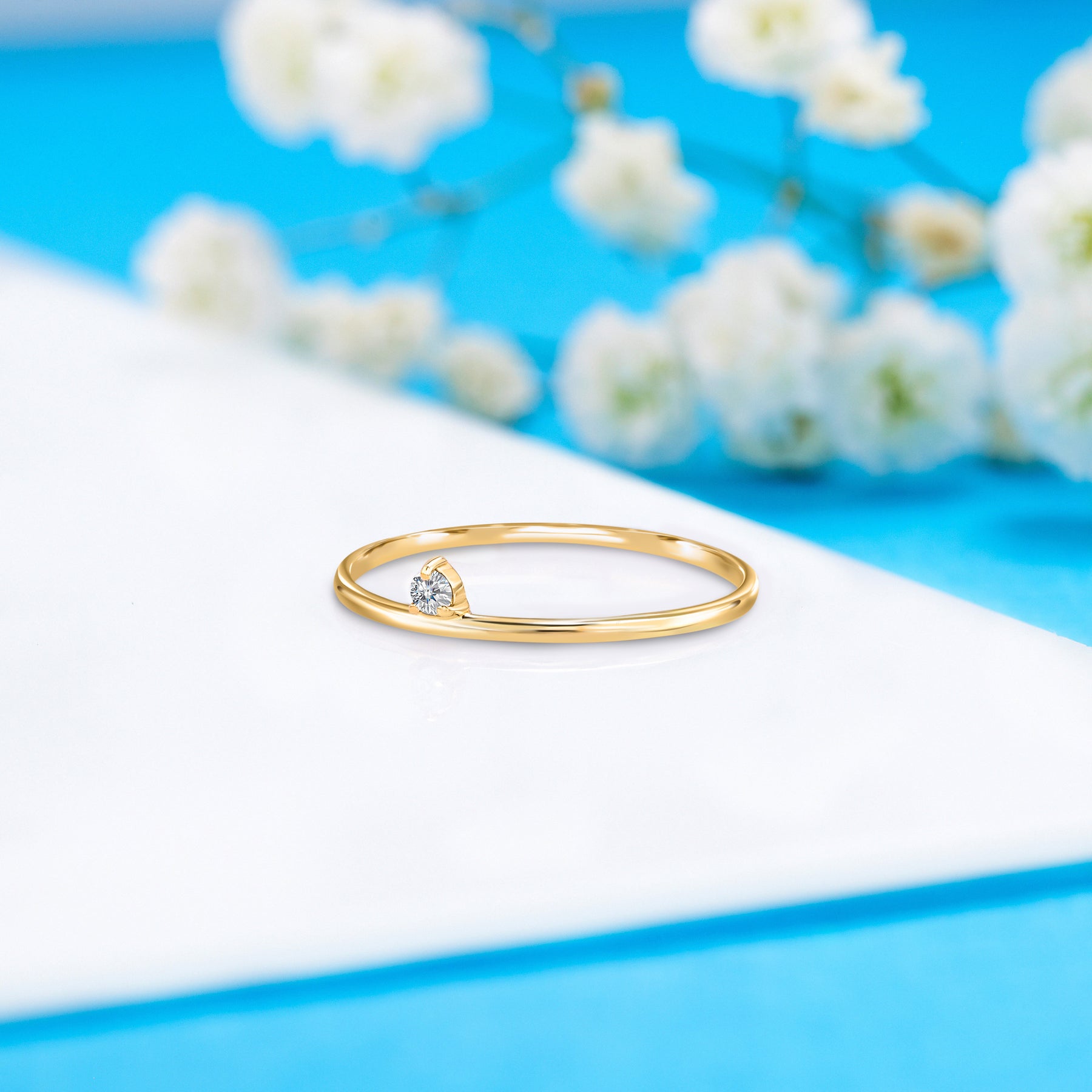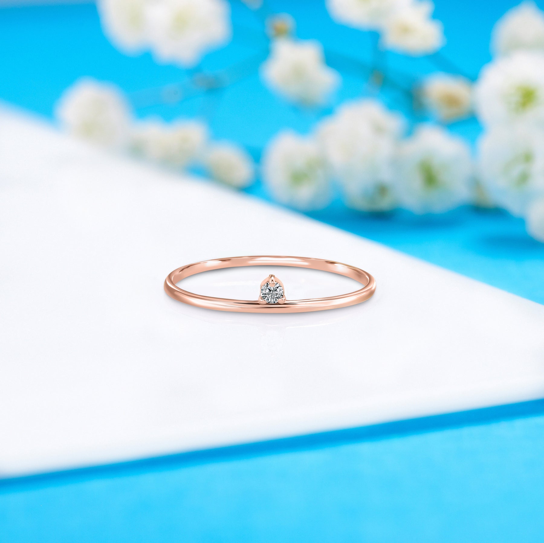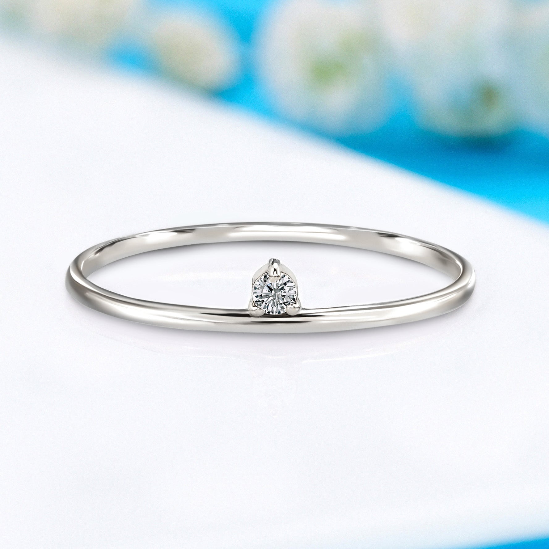 Minimalist 14k white gold solitaire diamond promise ring for her