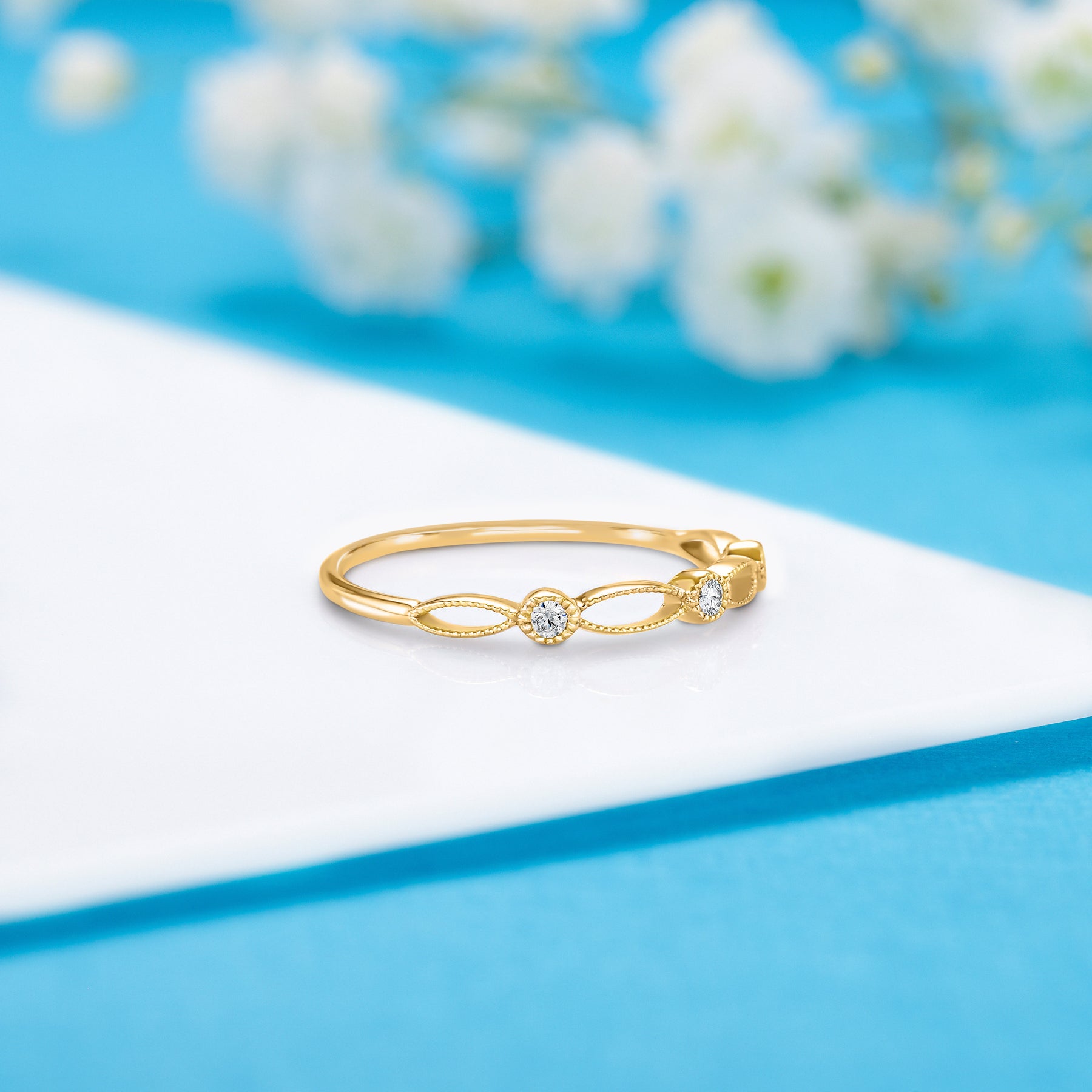 Dainty women 14k white gold diamond wedding band or stacking ring