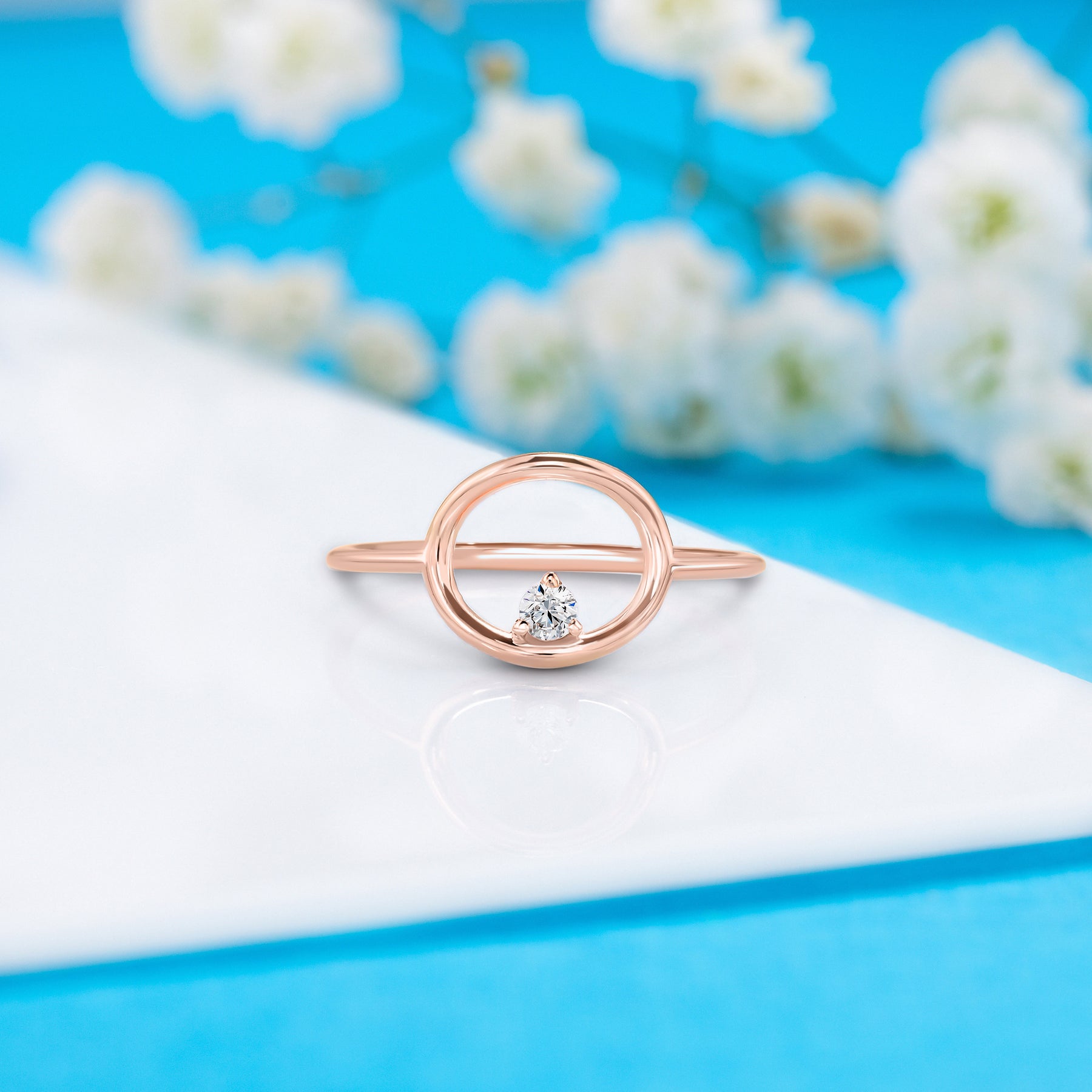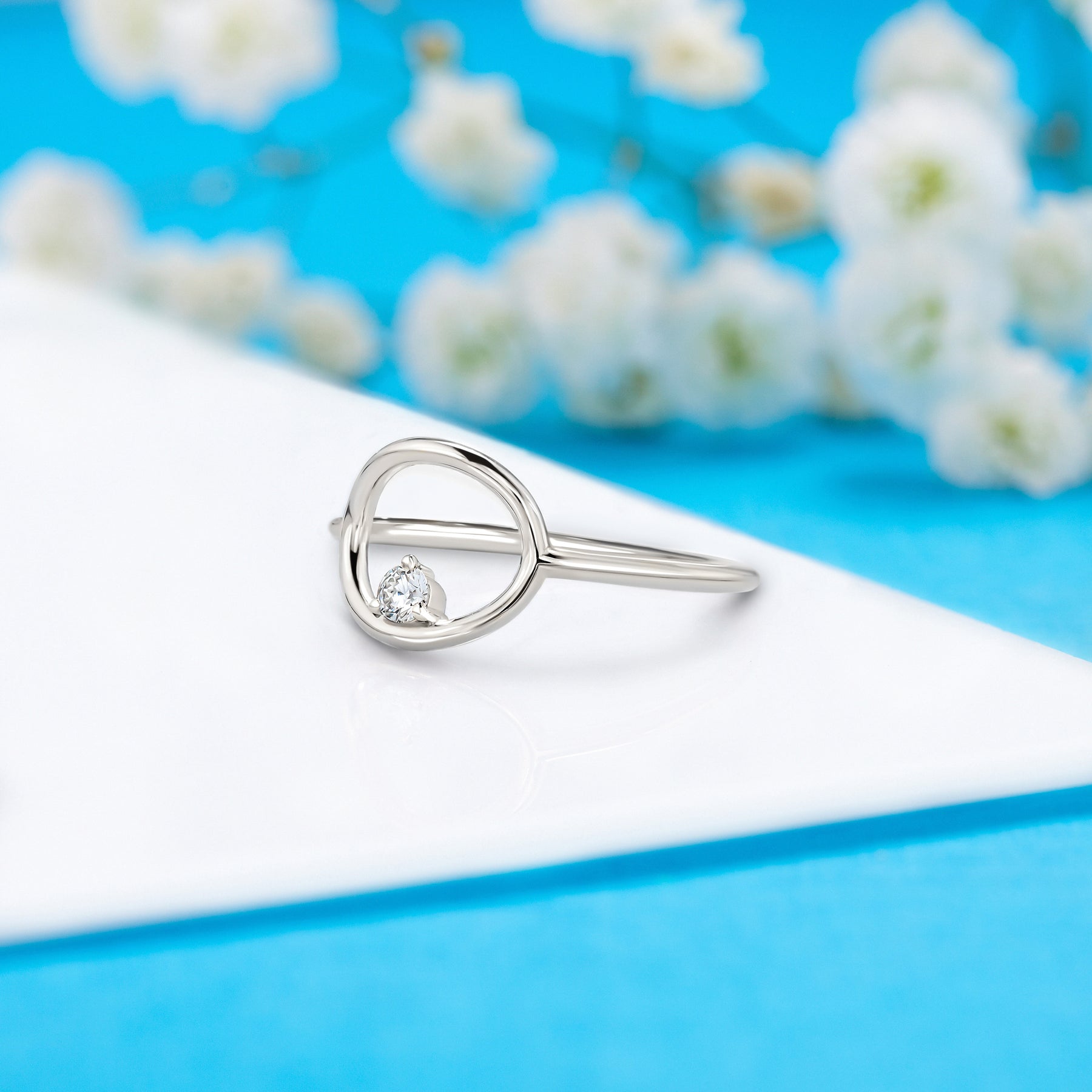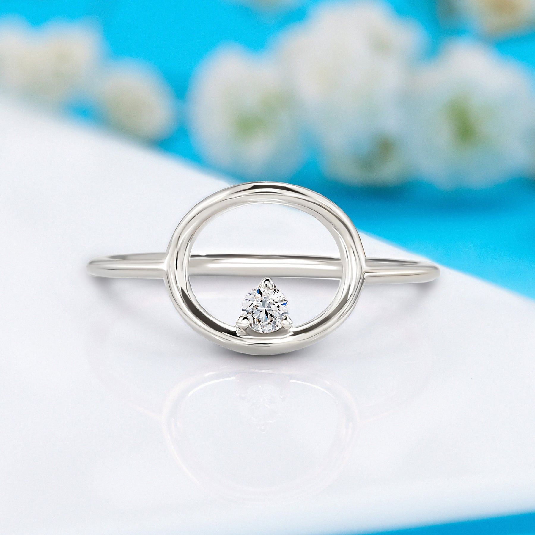 Unique 14k white gold solitaire diamond women geometric promise ring