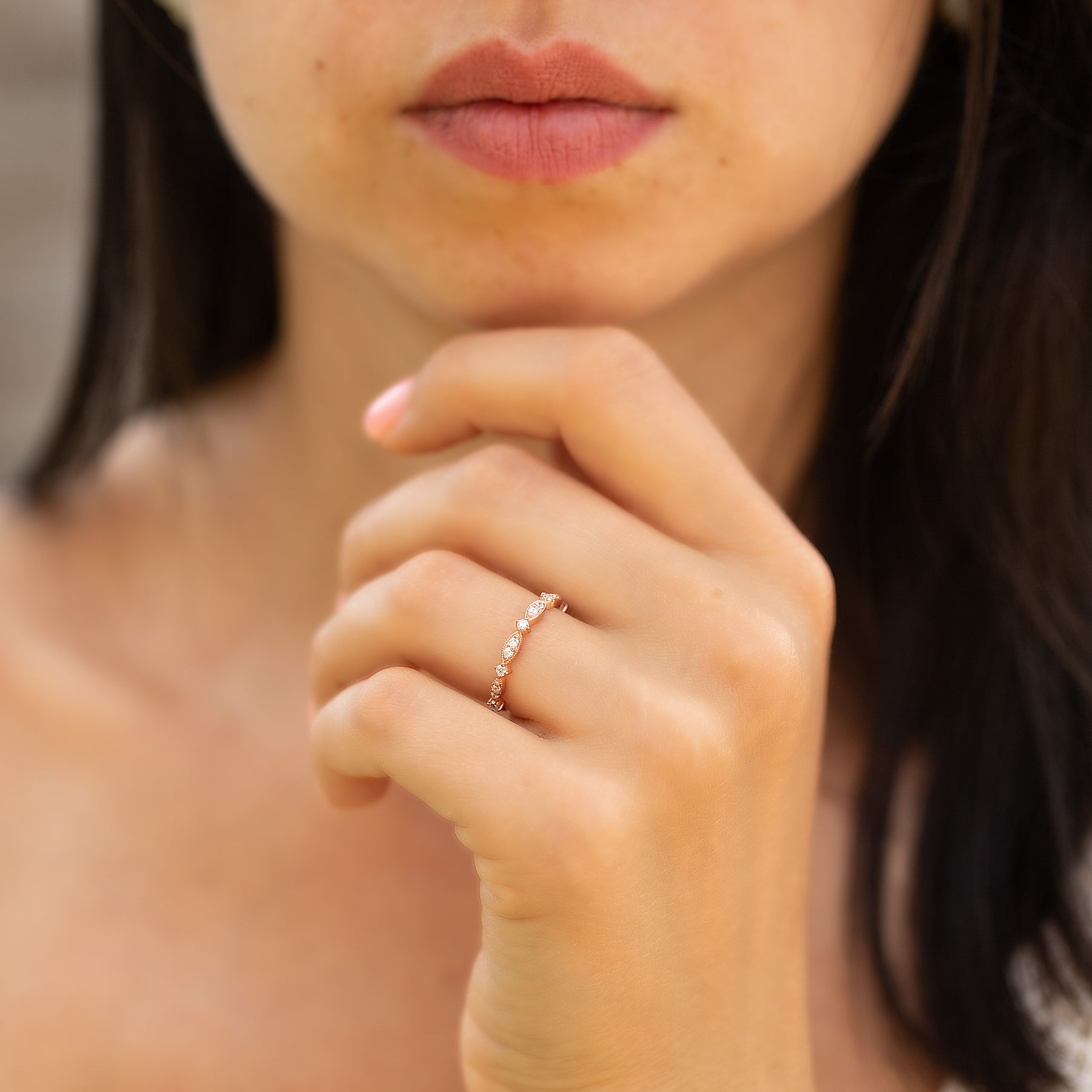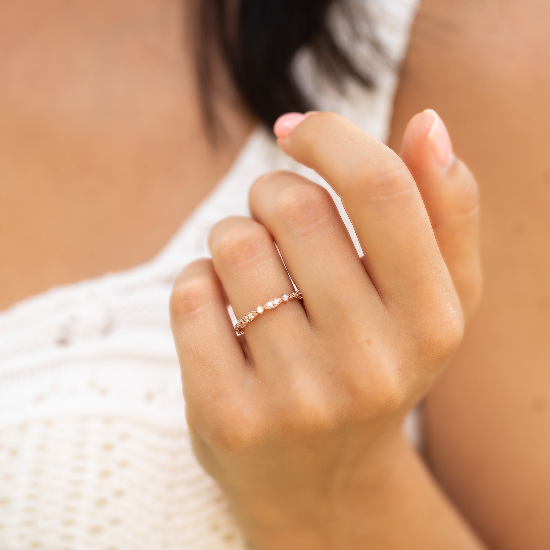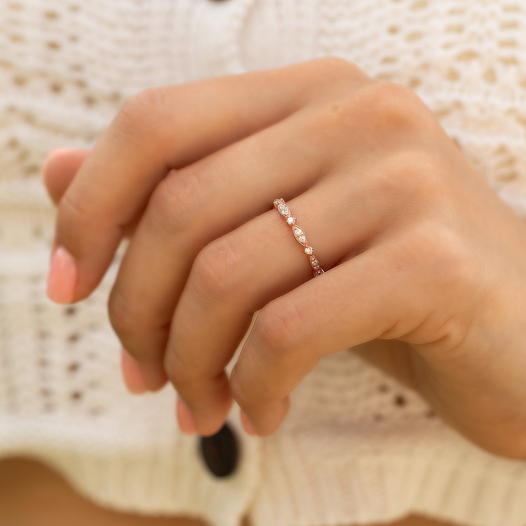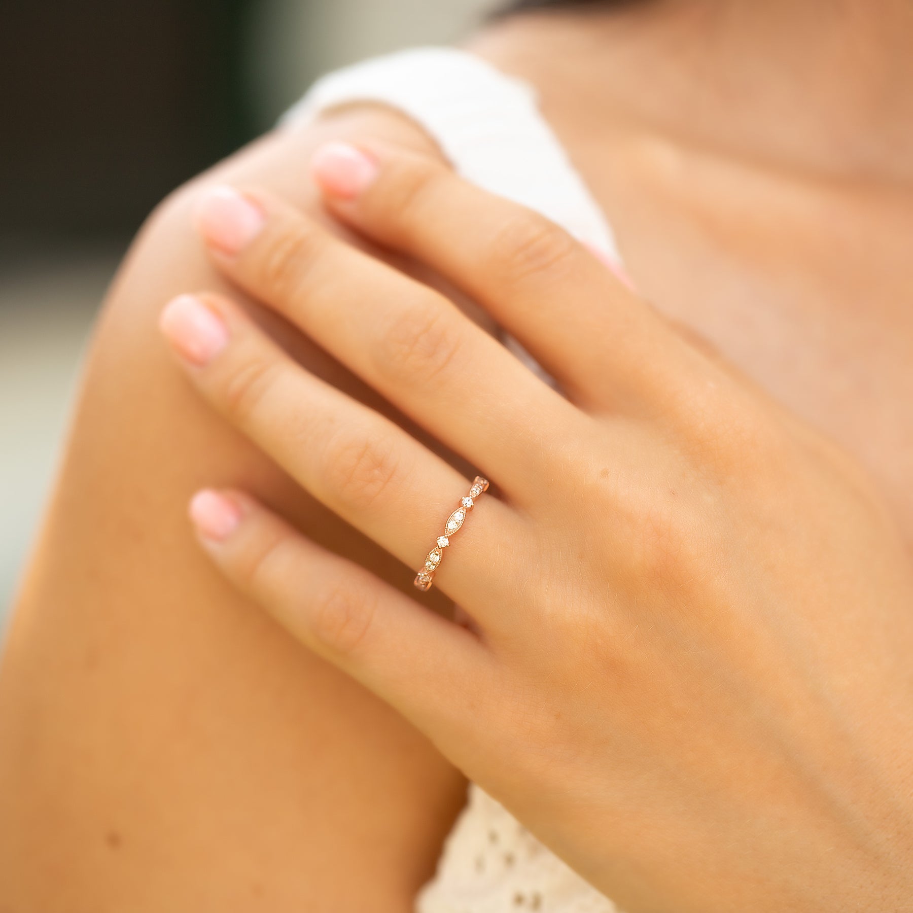 Dainty women vintage style art deco 14k rose gold diamond wedding band