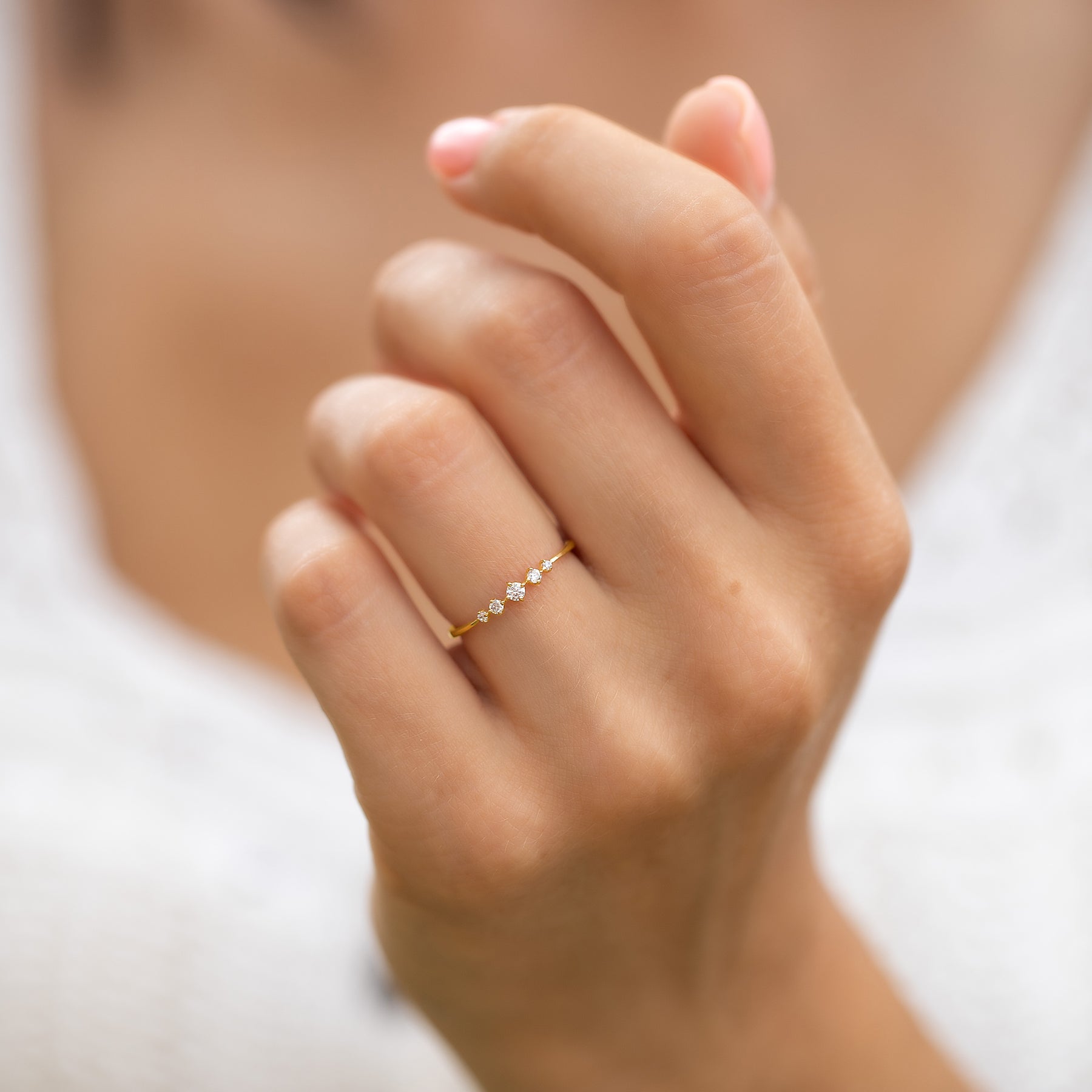 Minimalist dainty women 14k yellow gold diamond engagement ring