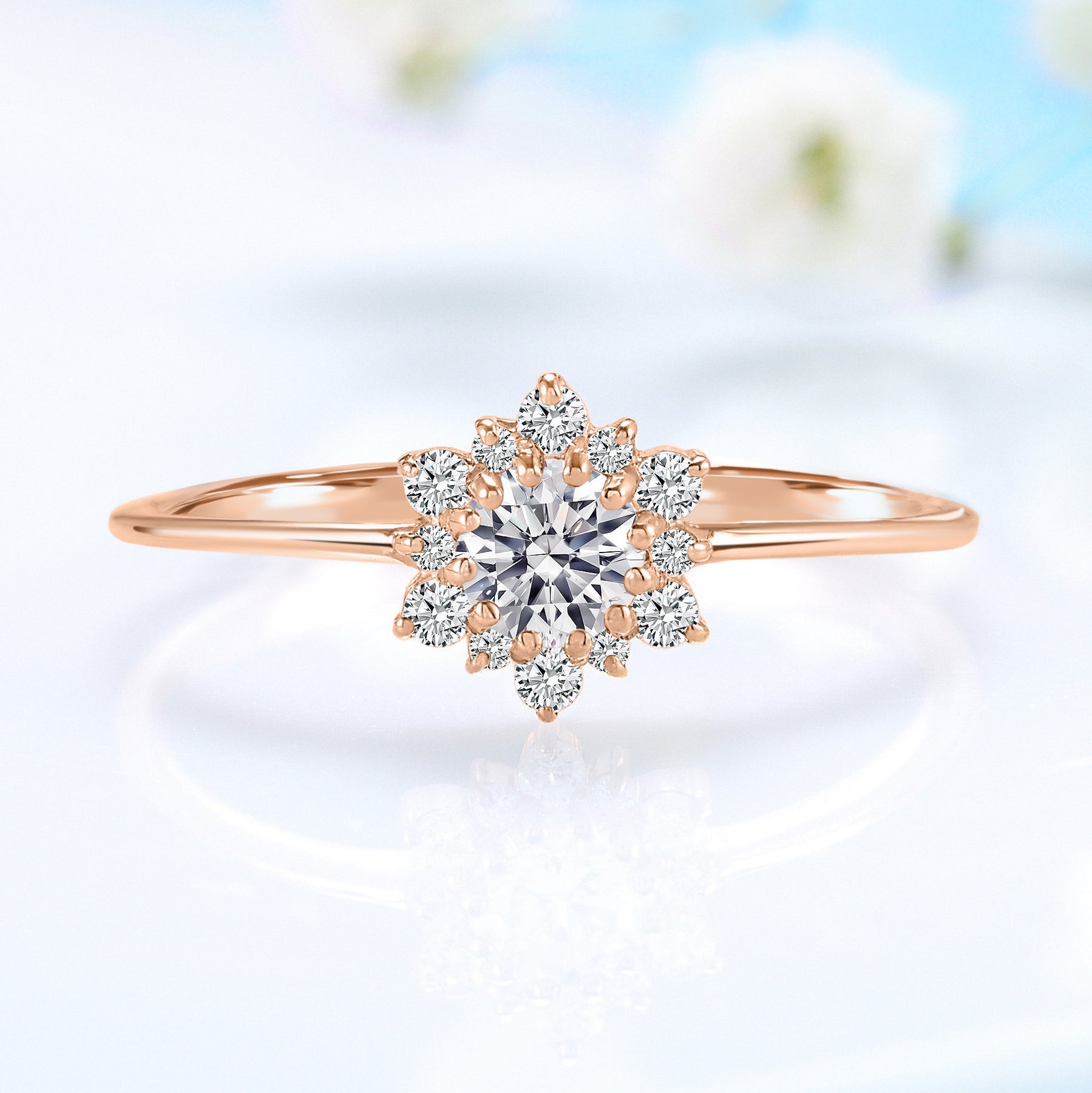 Unique Dainty 14K Rose Gold Women's Snowflake Diamond Engagement Ring or Promise Ring