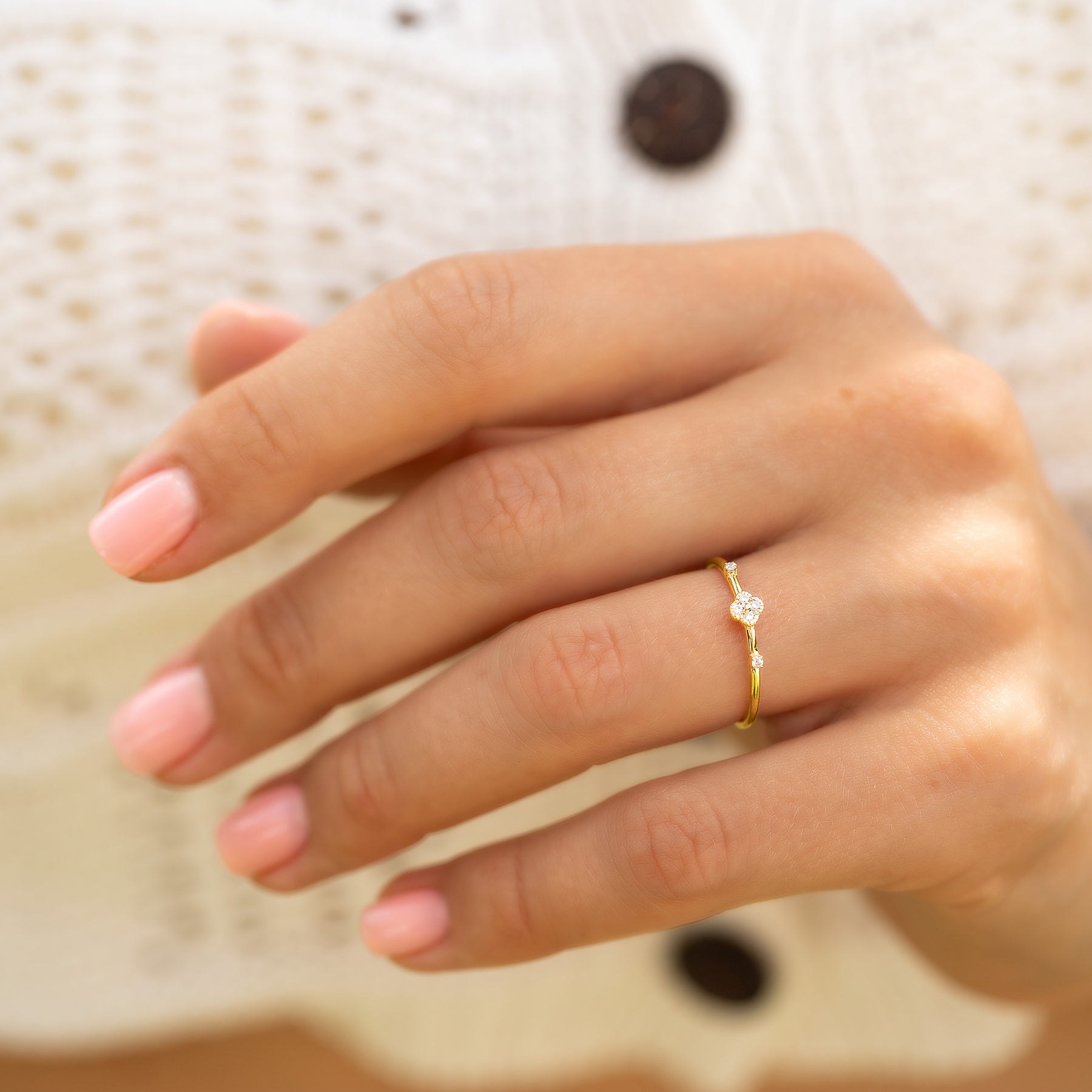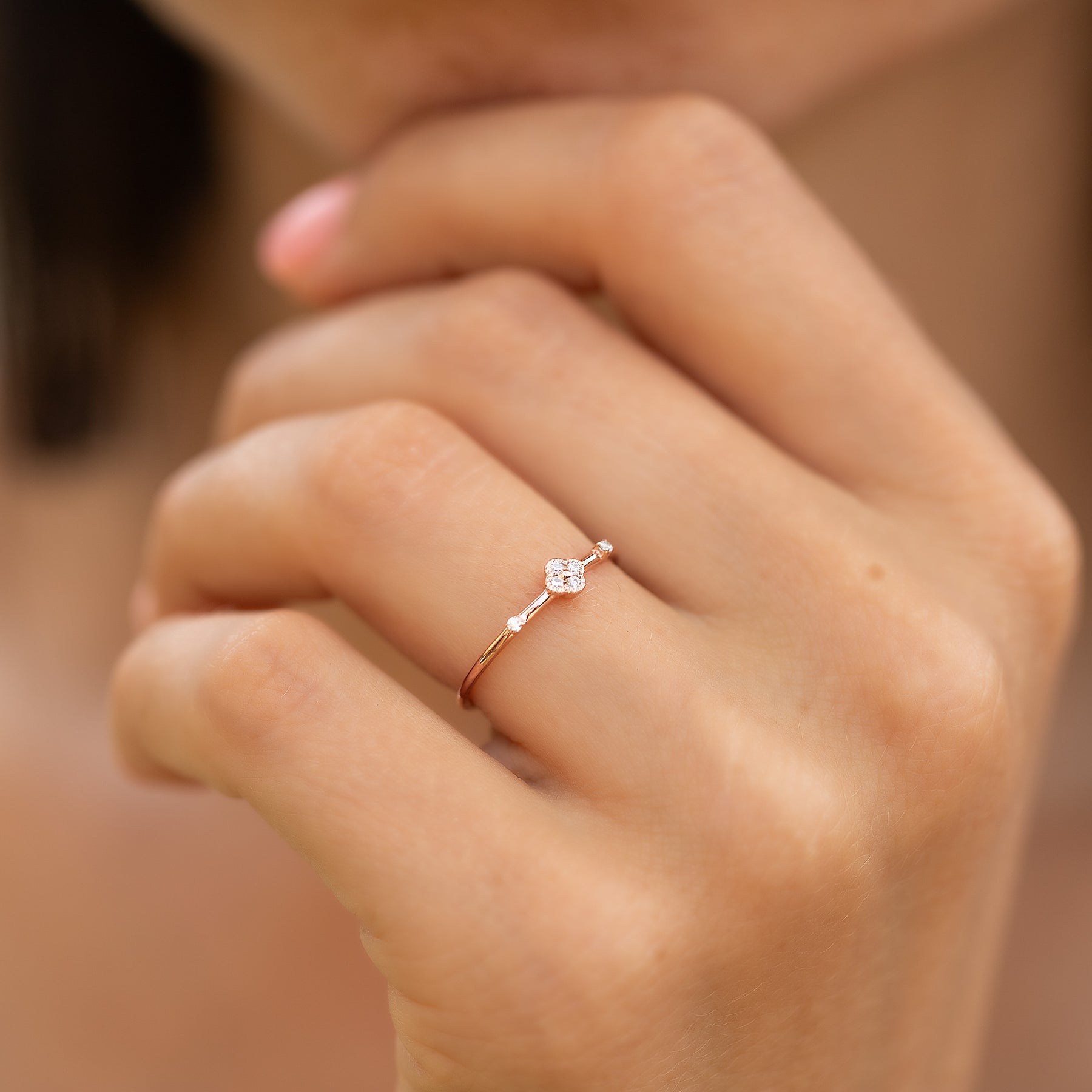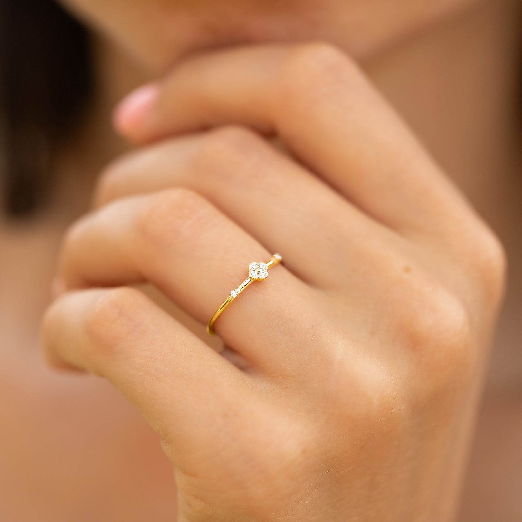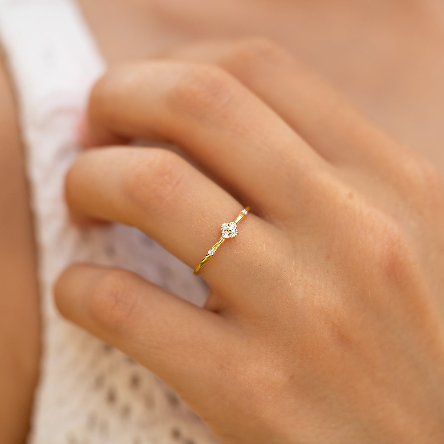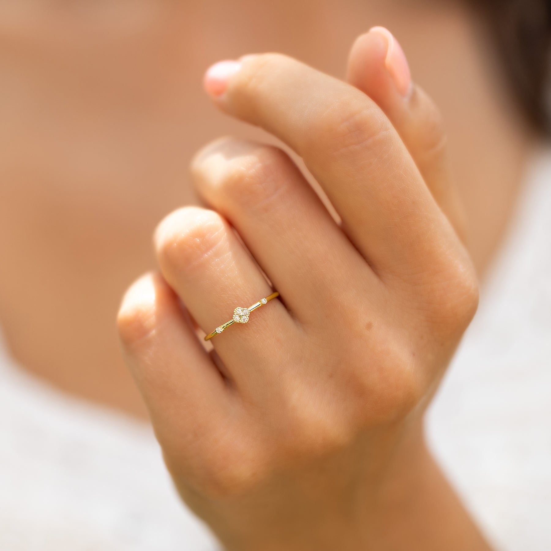 Minimalist delicate 14k yellow gold diamond floral women engagement ring