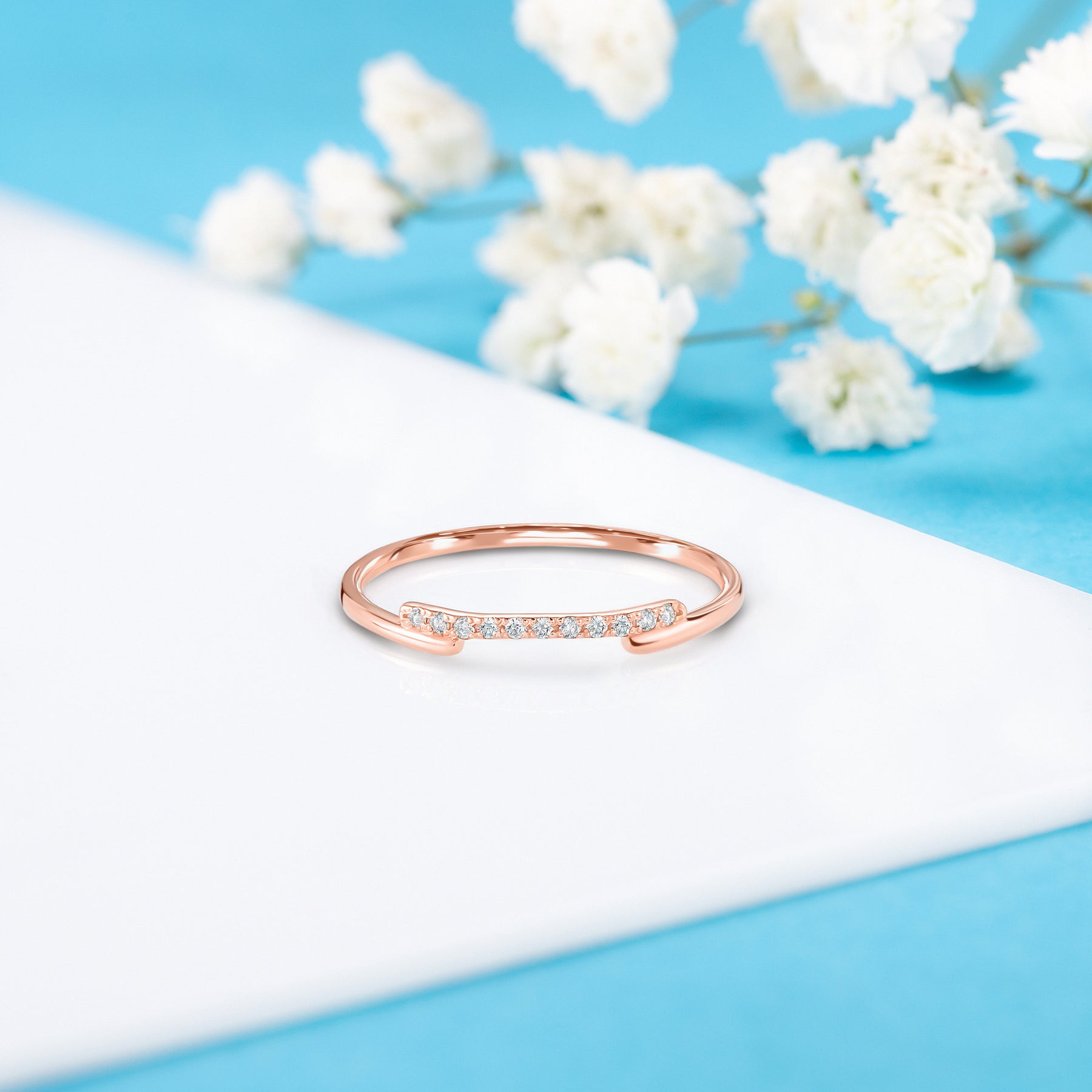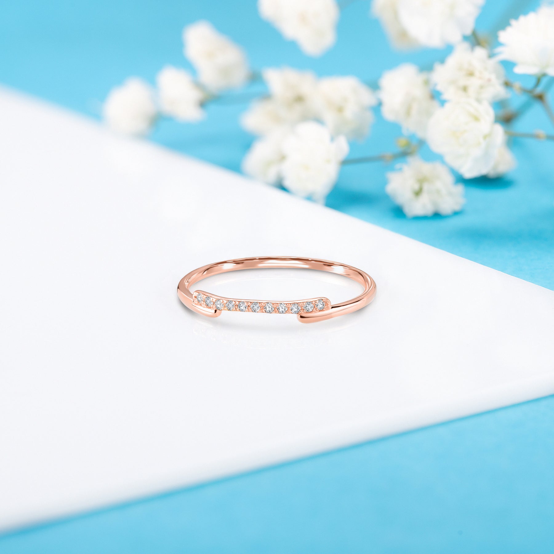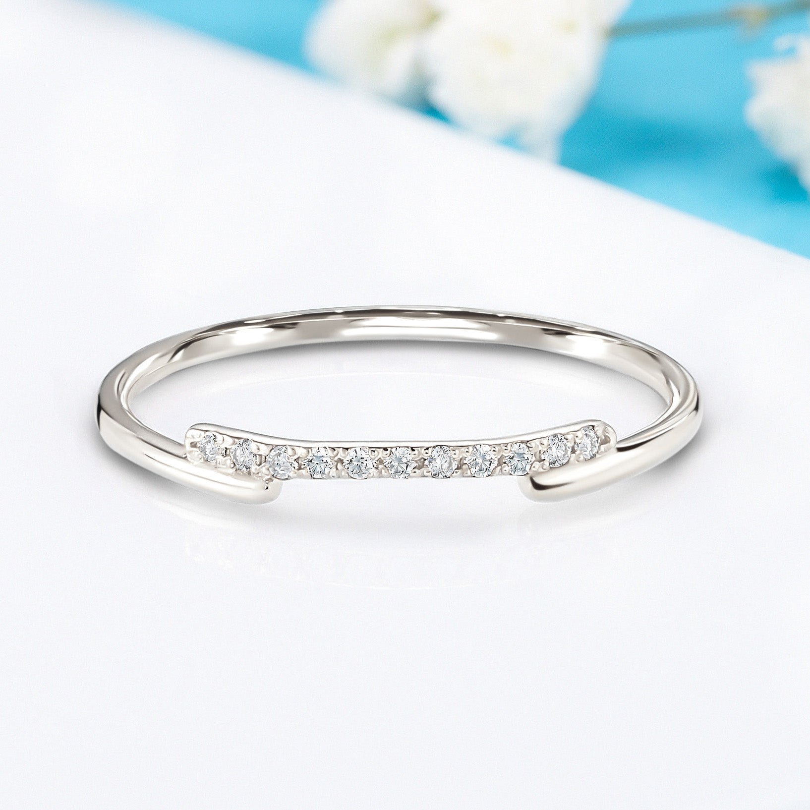 Dainty & elegant 14k white gold geometric diamond women wedding stacking ring