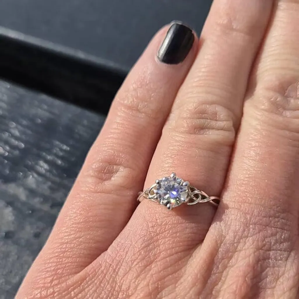 The cubic zirconia centerpiece delivers diamond-like brilliance at an accessible price, while the interwoven knotwork represents eternal love, unity, and loyalty — perfect for an engagement, promise, or anniversary gift. Made with genuine 925 sterling silver, this ring is hypoallergenic, nickel-free, and suitable for daily wear.