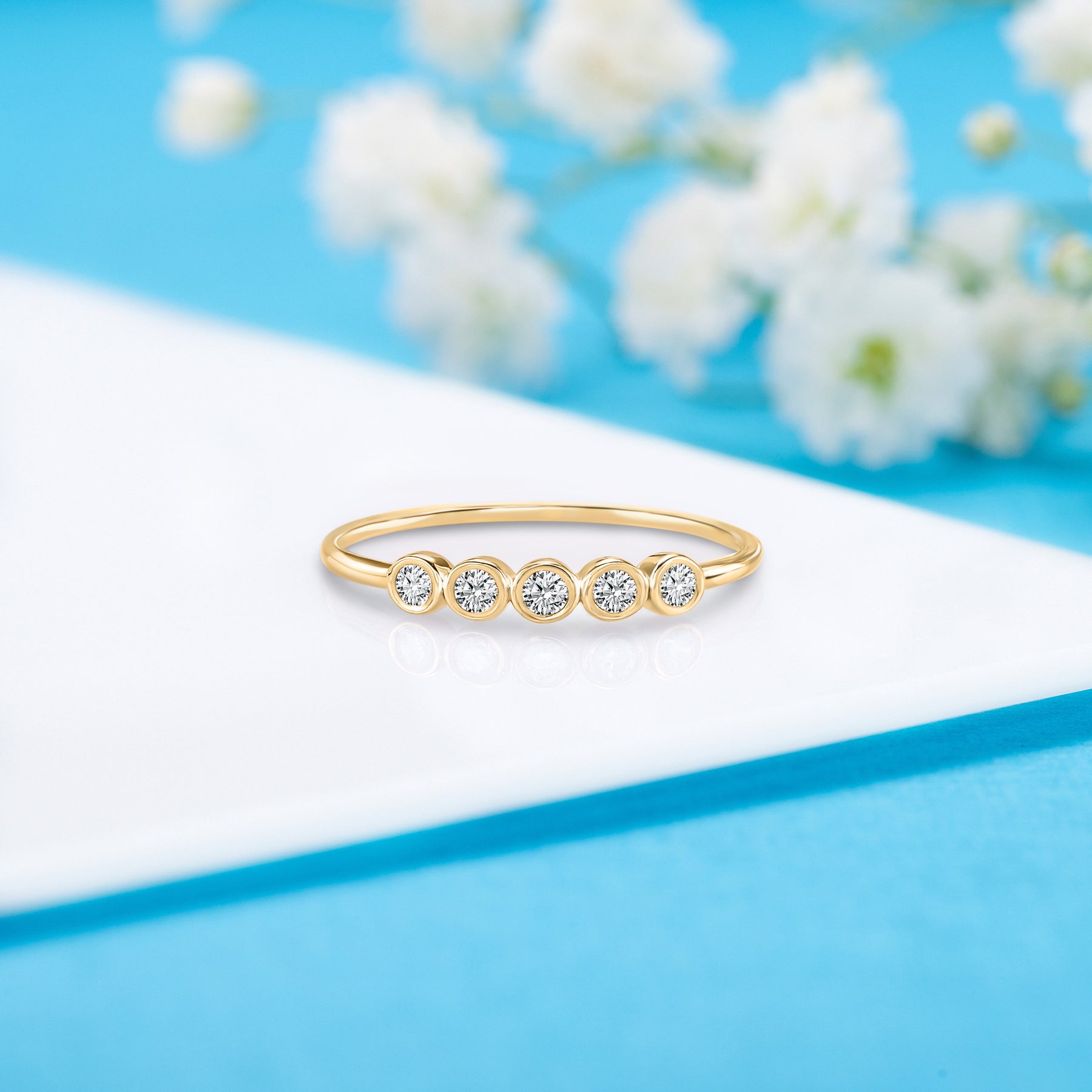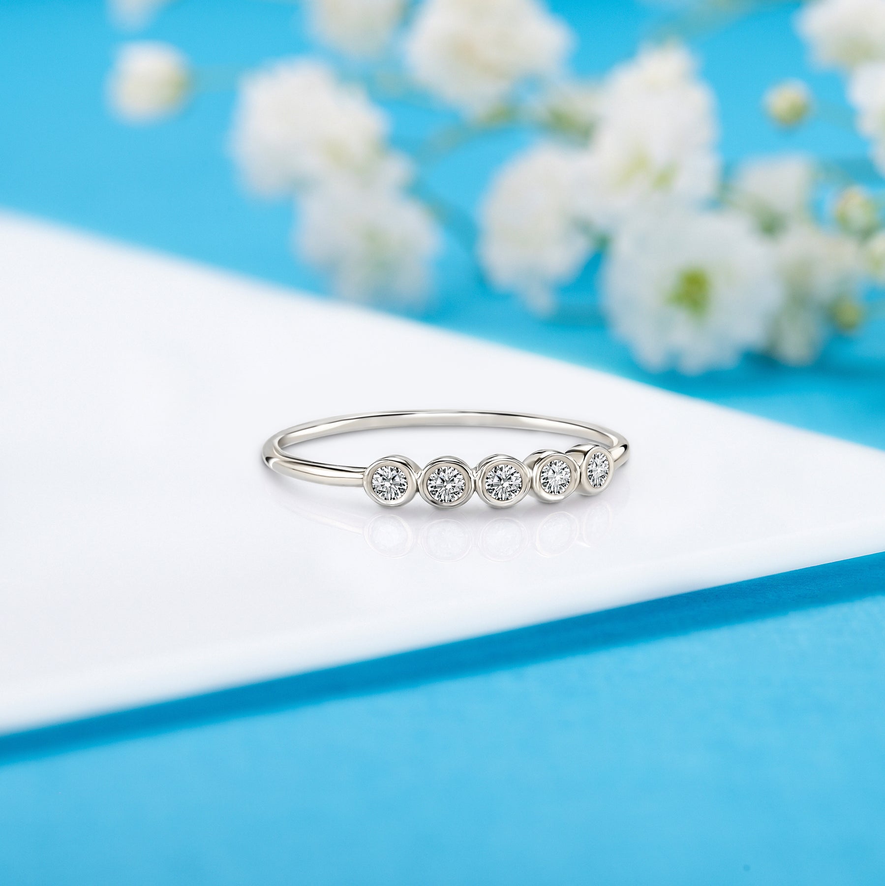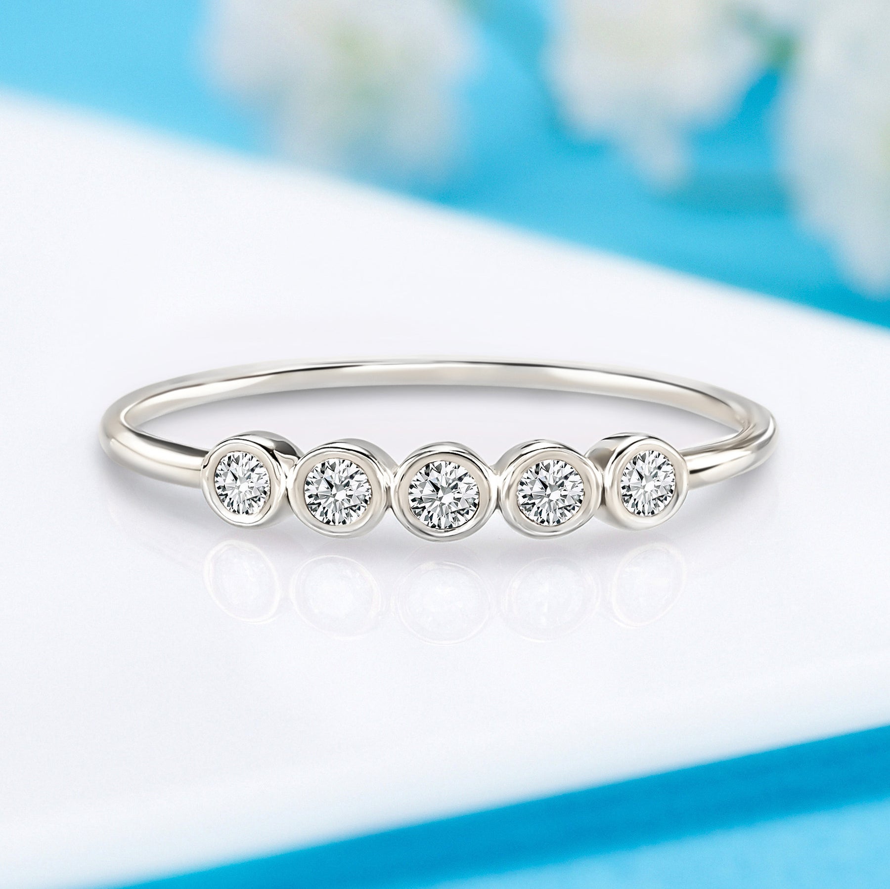 Dainty minimalist 14k white gold 5 stone bezel setting diamond women engagement ring