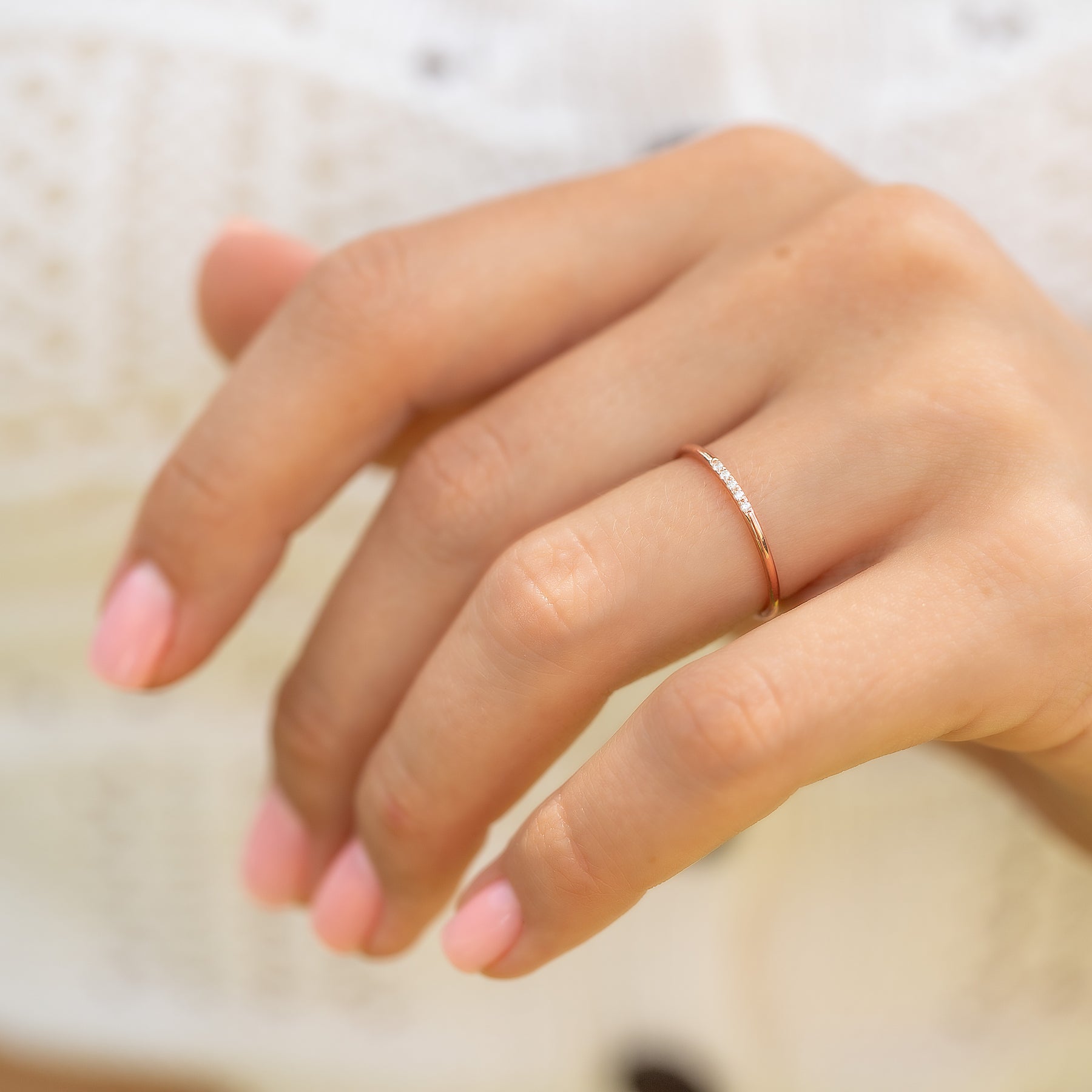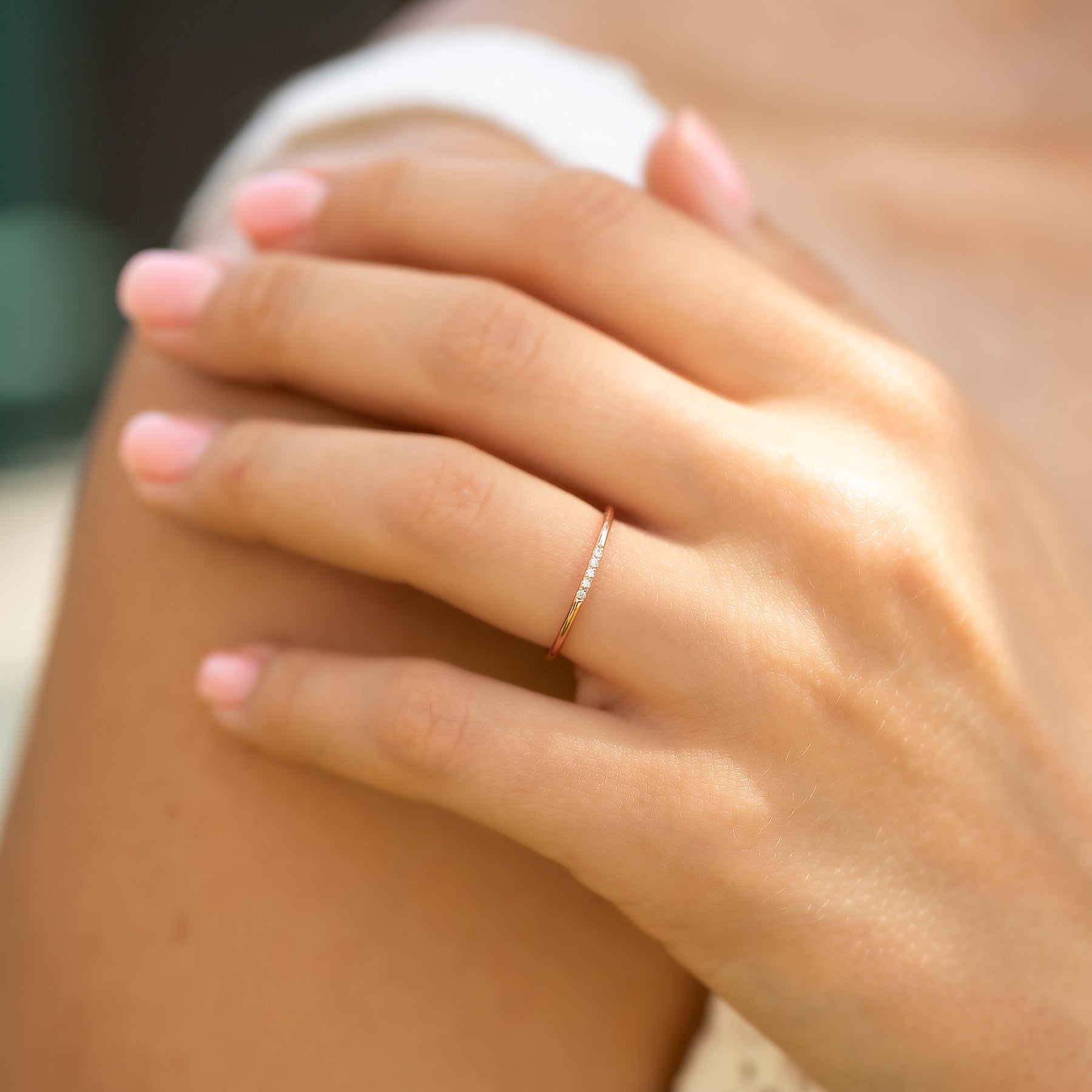 Delicate minimalist 14k rose gold pave diamond promise ring