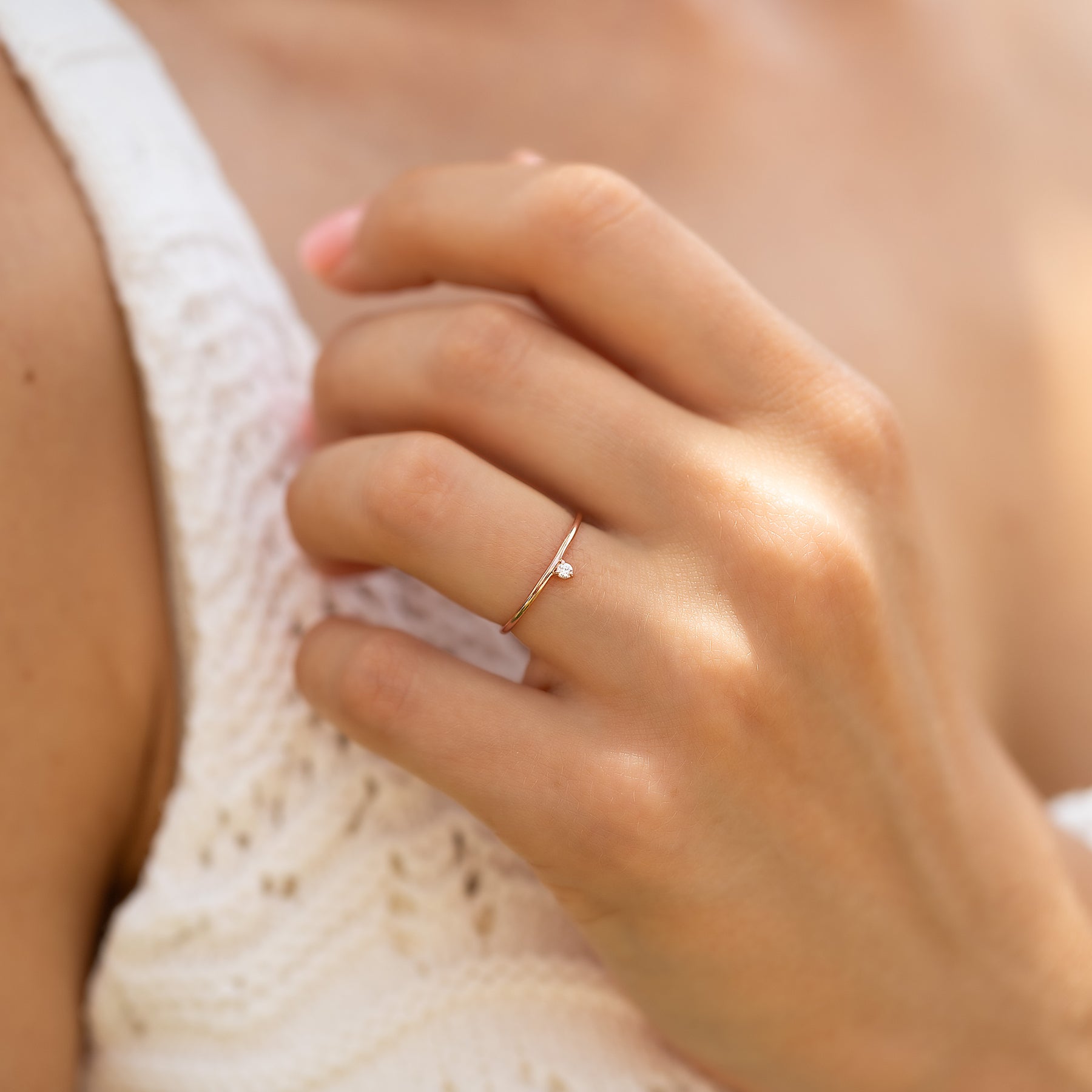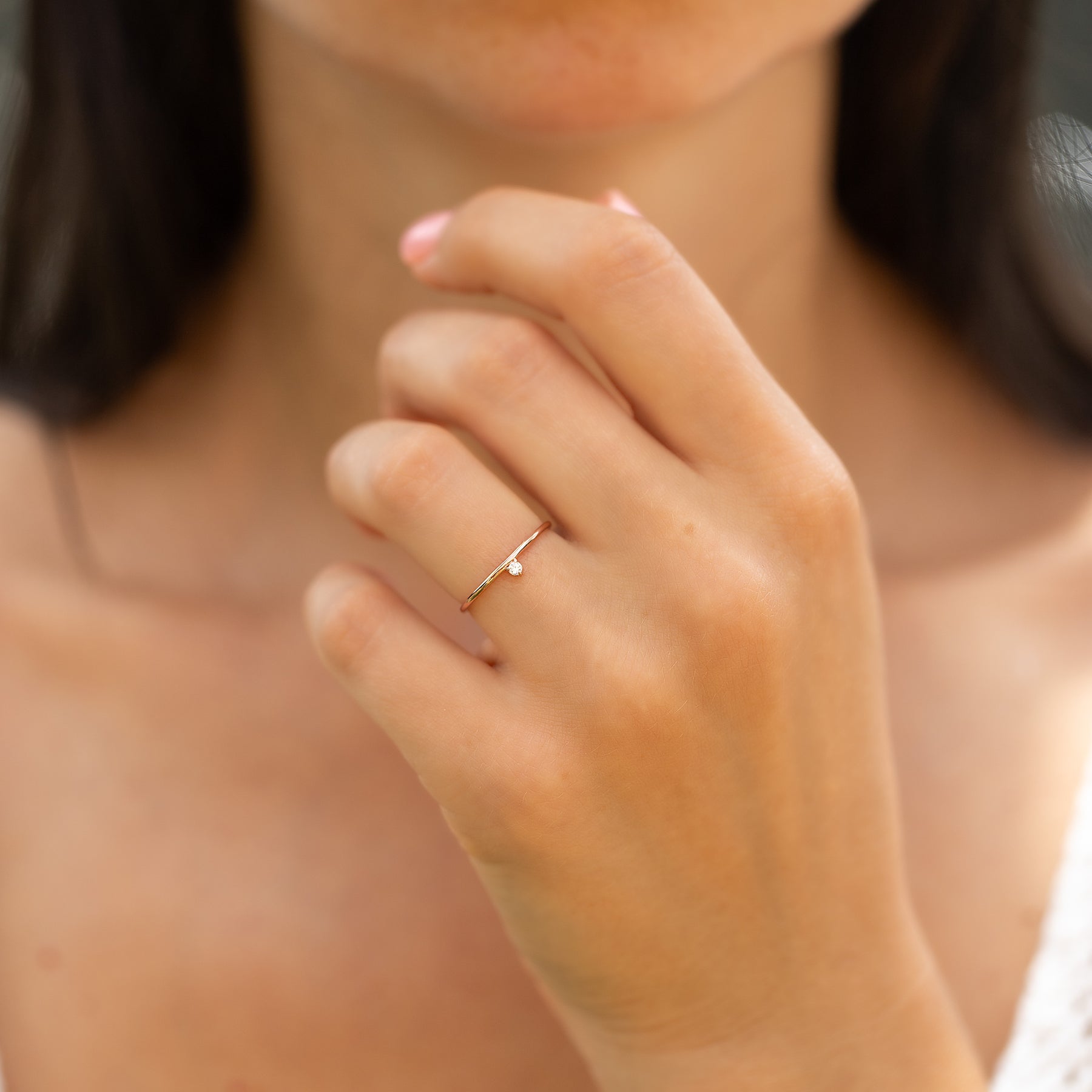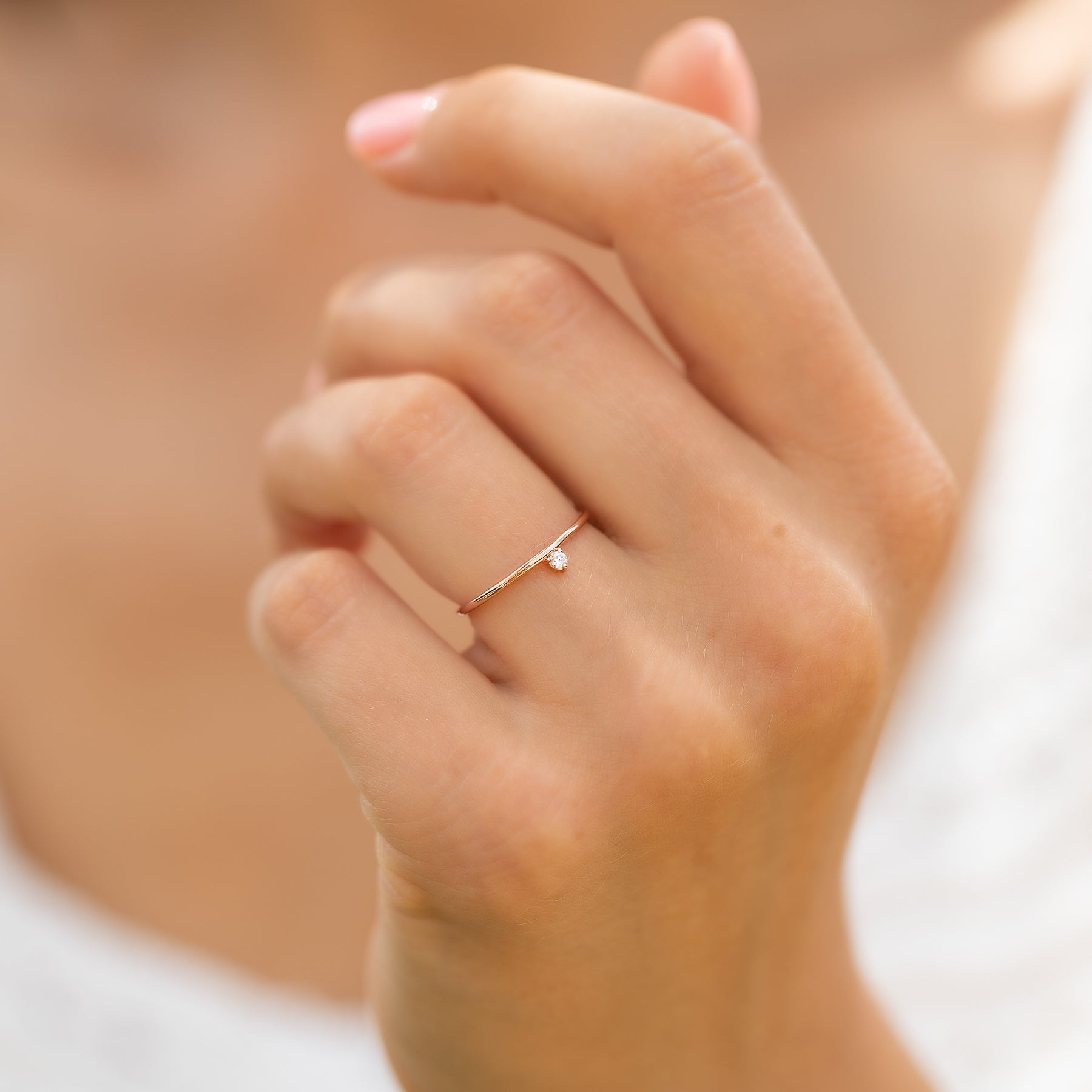Minimalist 14k rose gold solitaire diamond promise ring for her