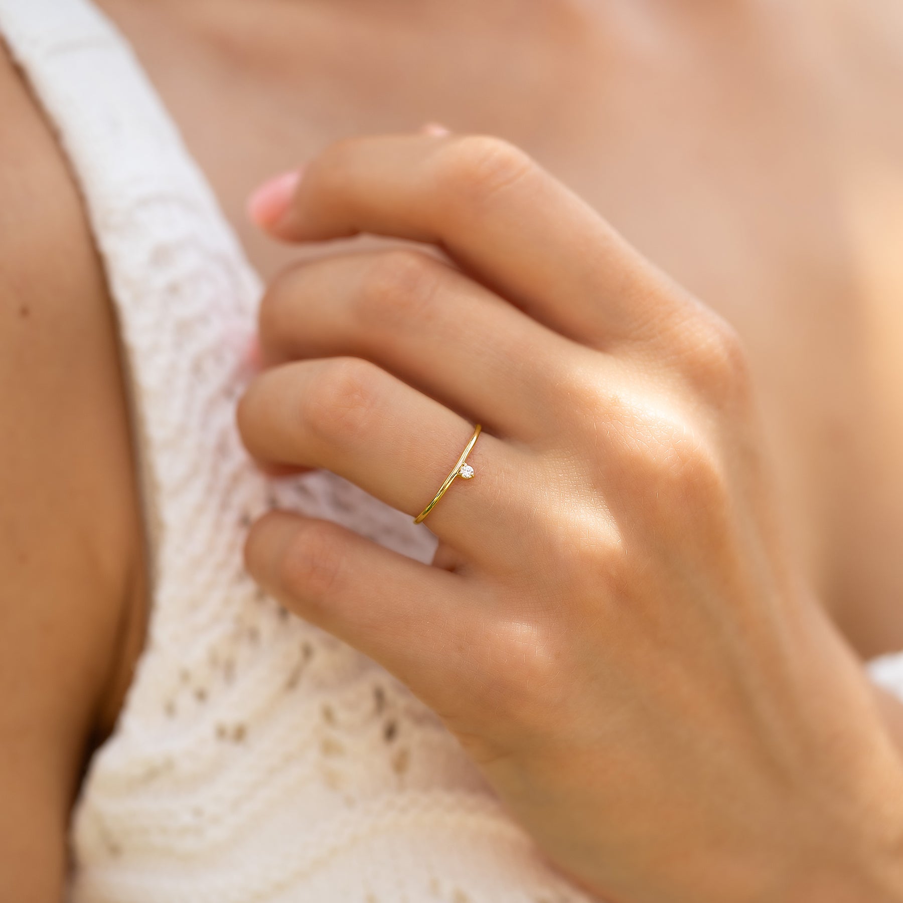 Minimalist 14k yellow gold solitaire diamond promise ring for her