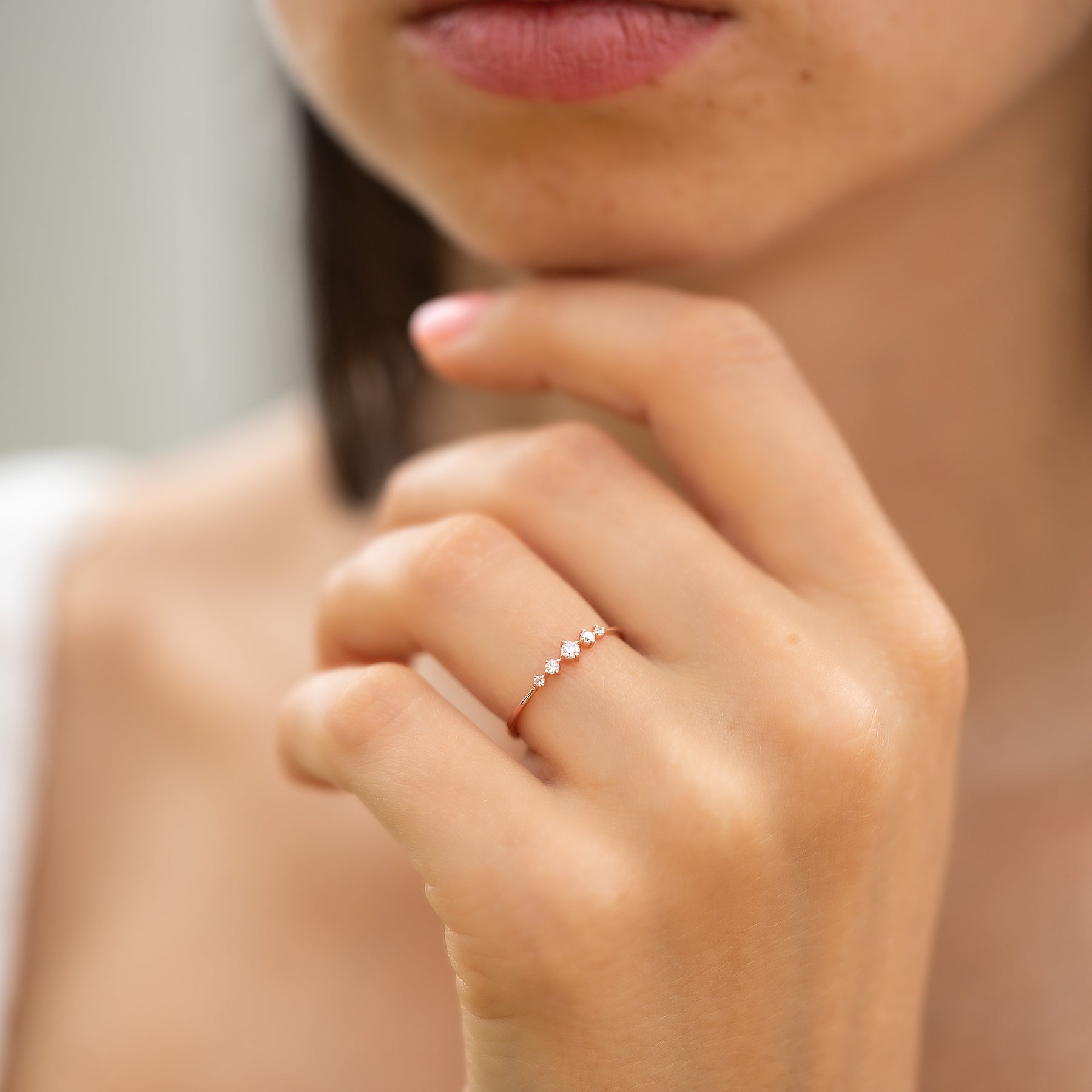 Minimalist dainty 14k rose gold diamond promise ring for her