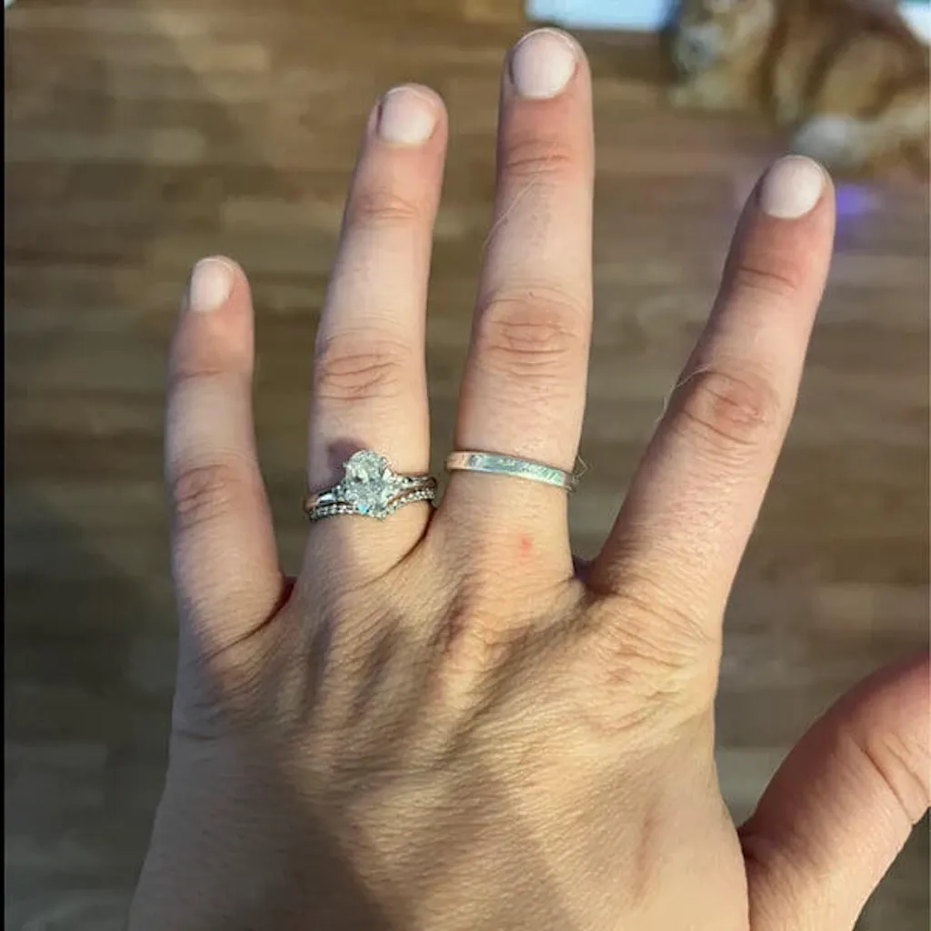 Couldn’t have asked for a better ring for my wedding band. The band fits my engagement ring just right and is gorgeous.