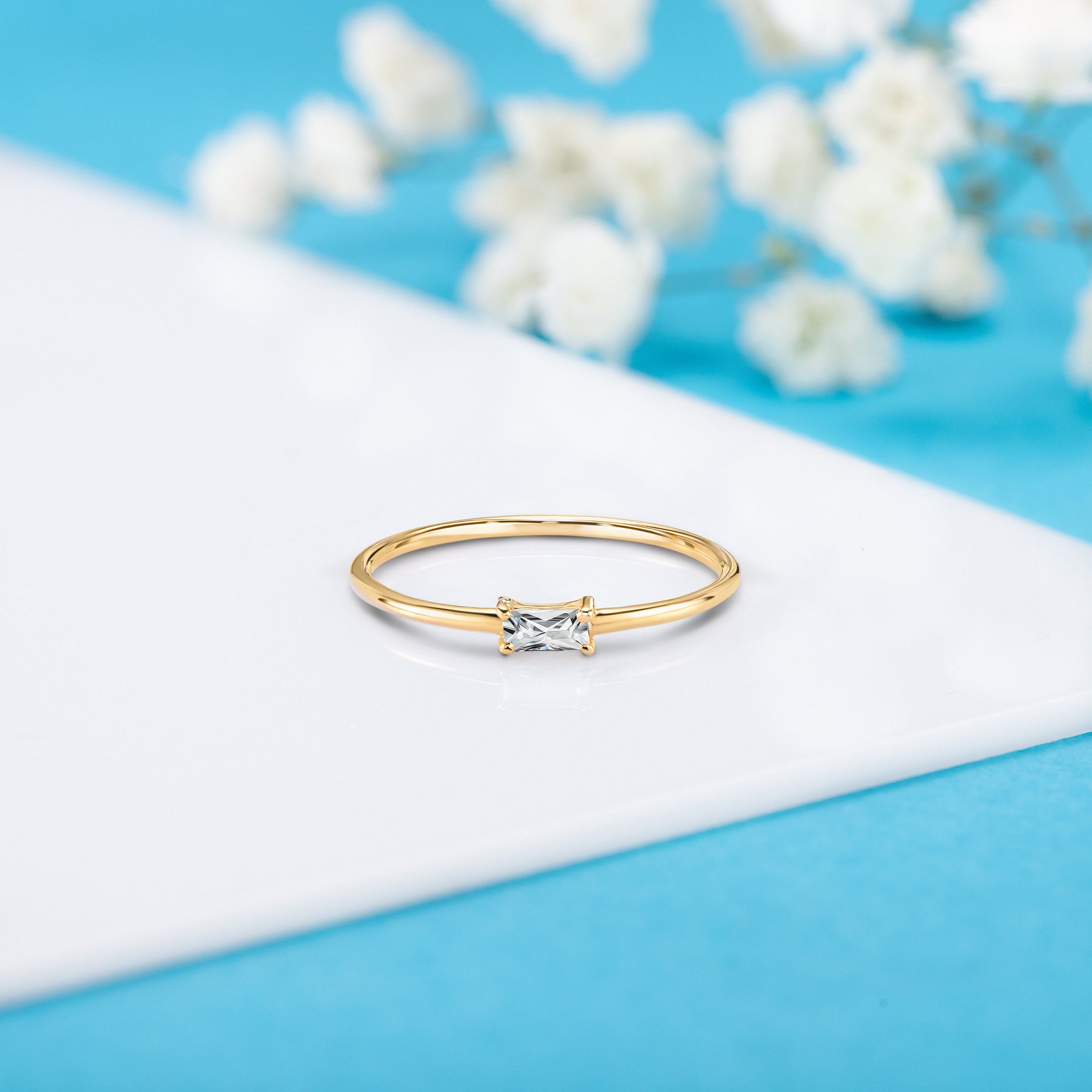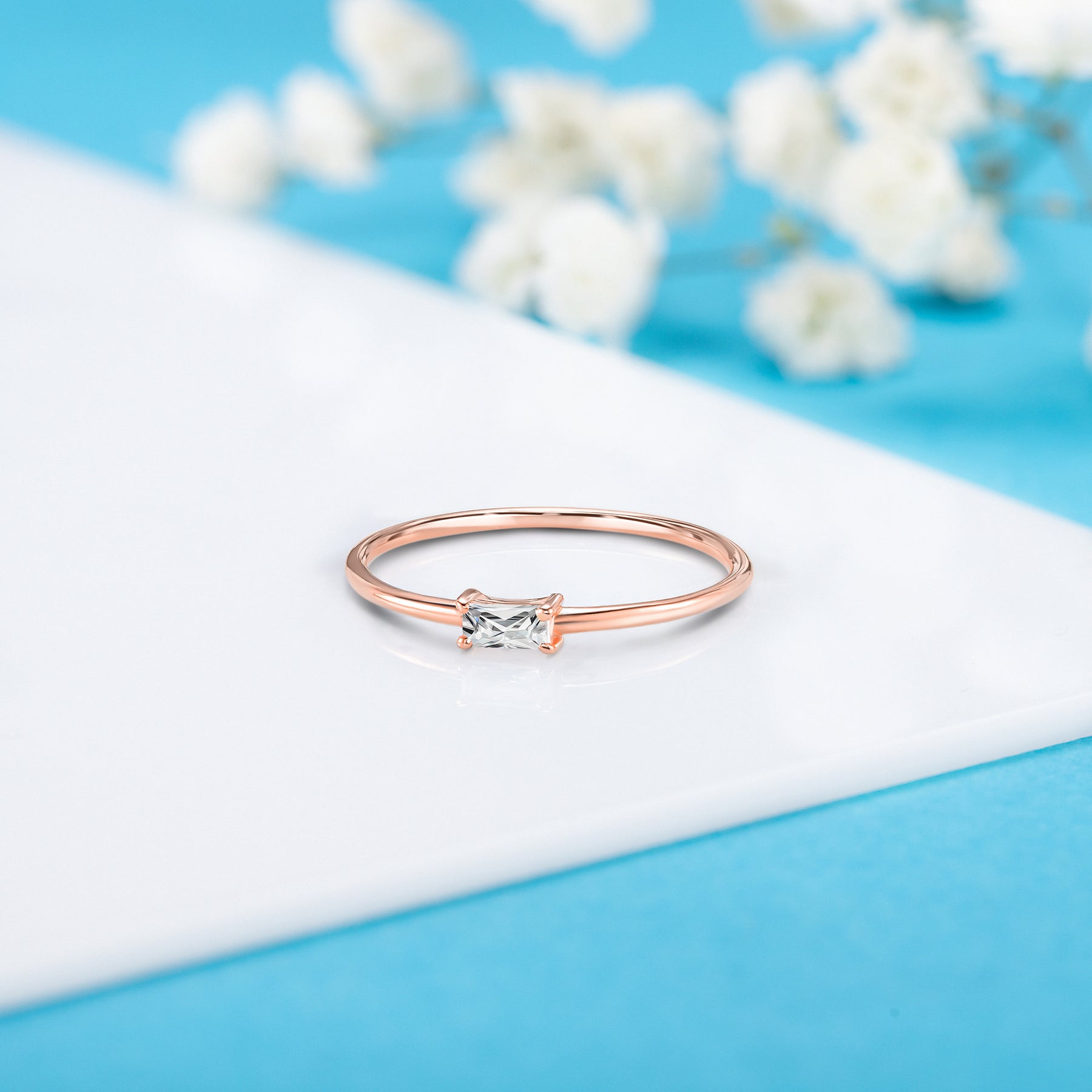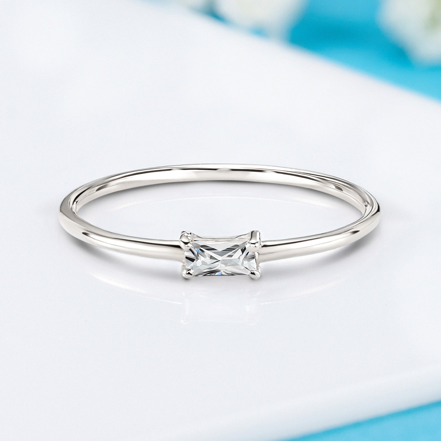 Dainty minimalist 14k white gold baguette diamond solitaire promise ring for her