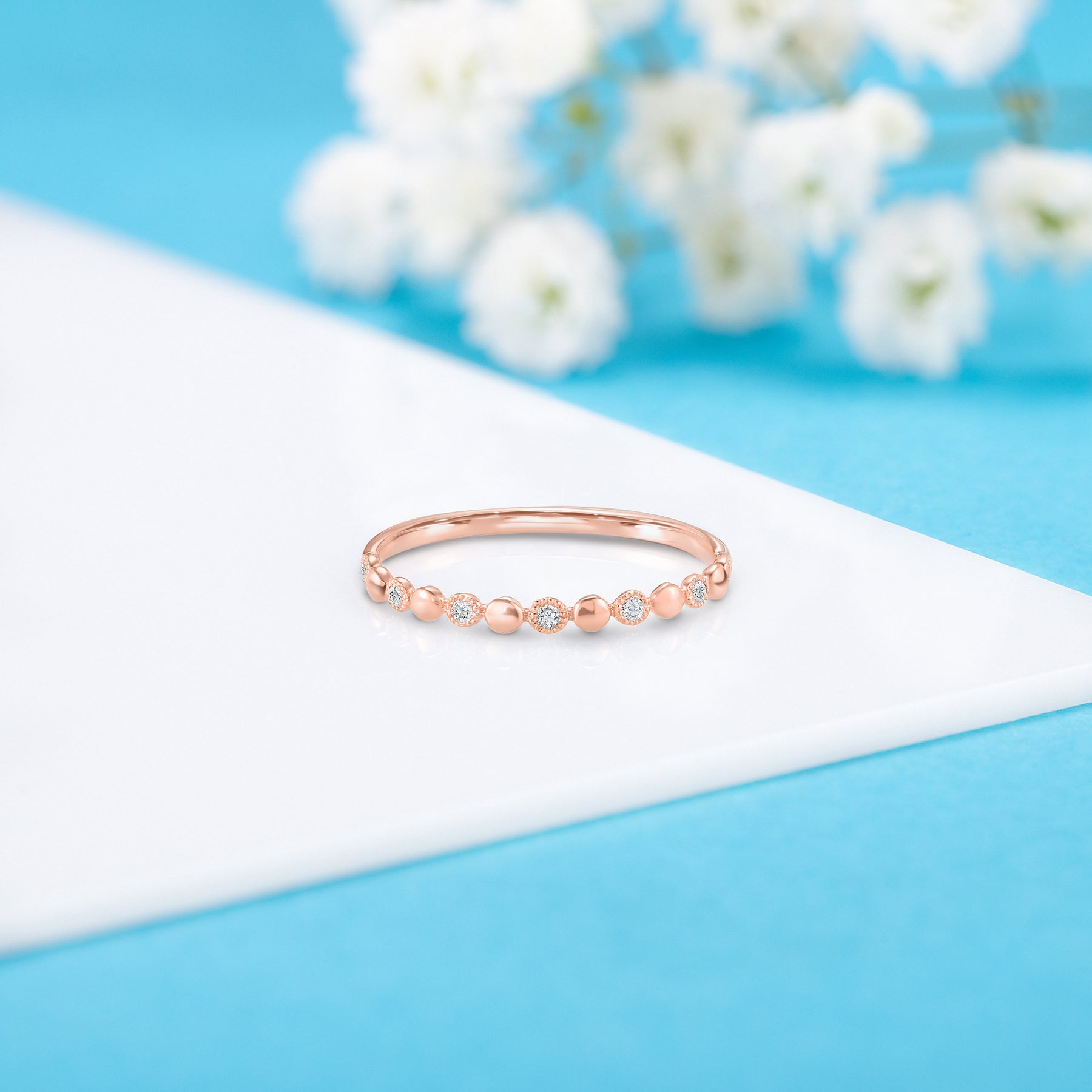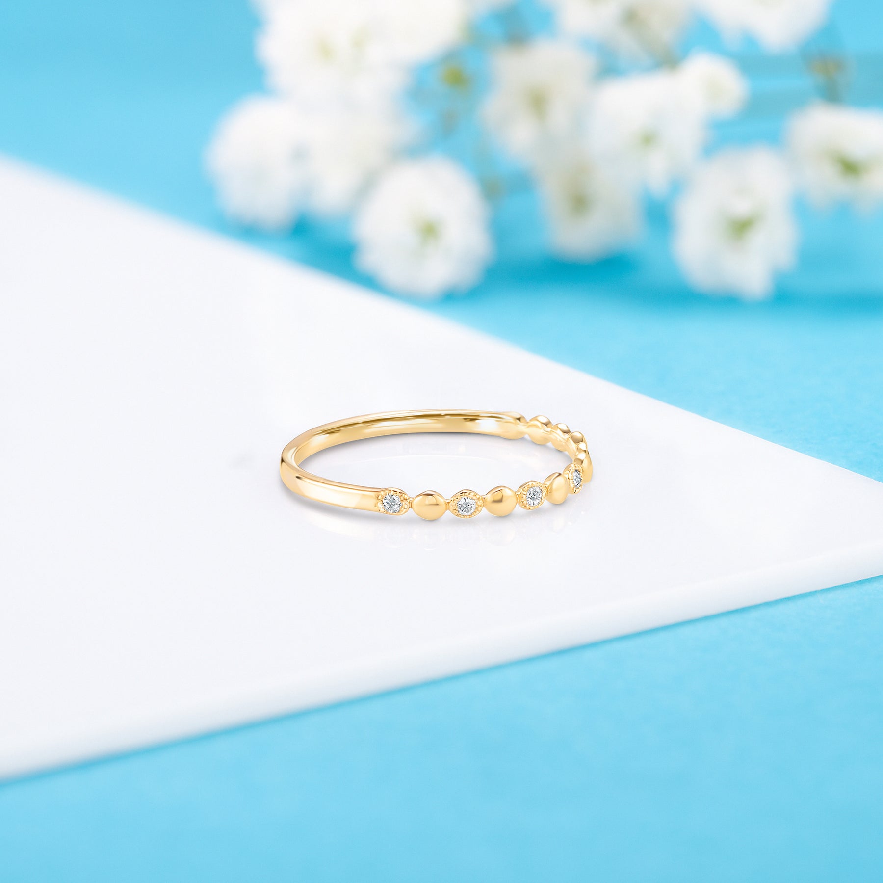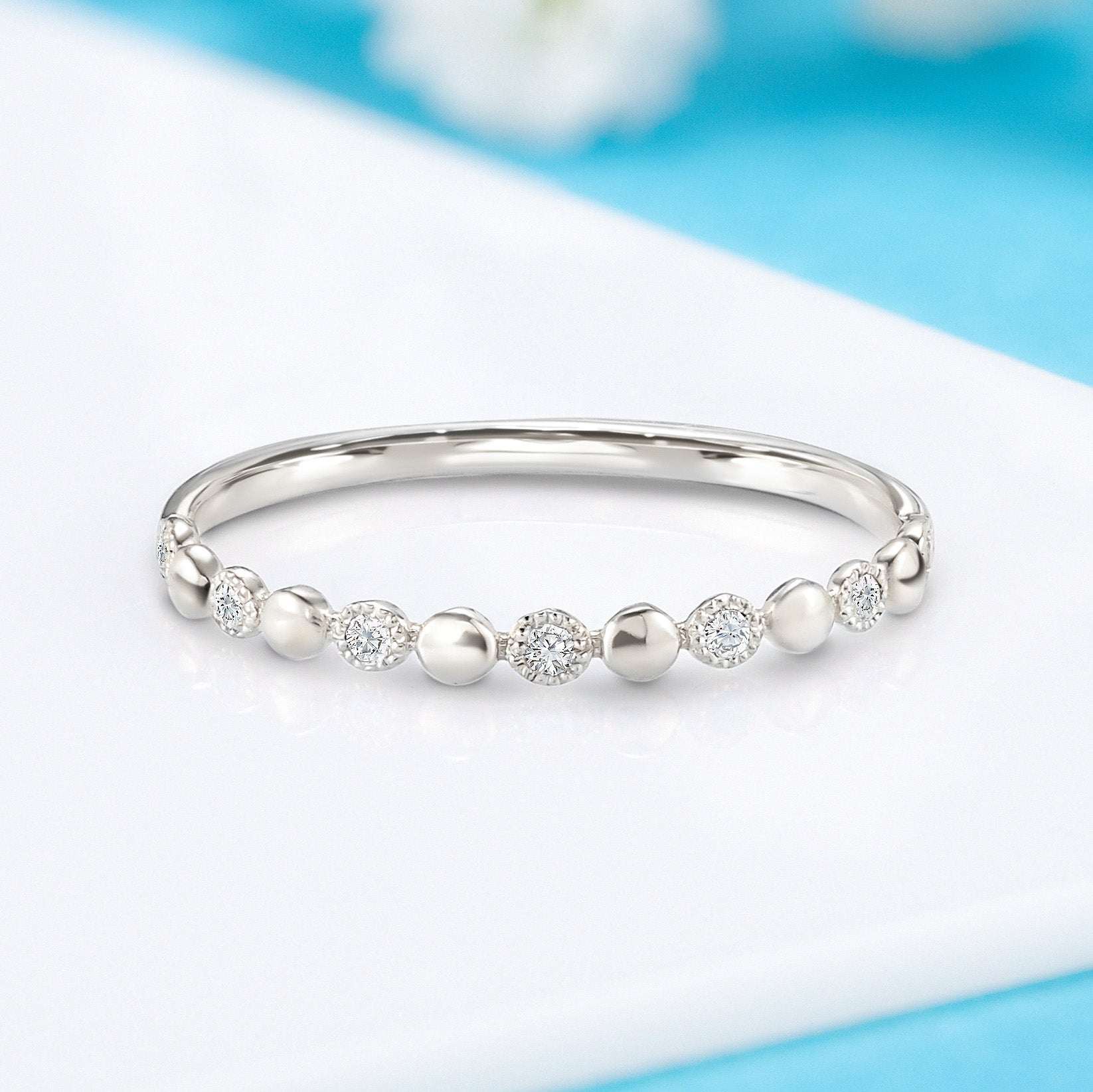 Tiny minimalist 14k white gold women diamond wedding band or stacking ring