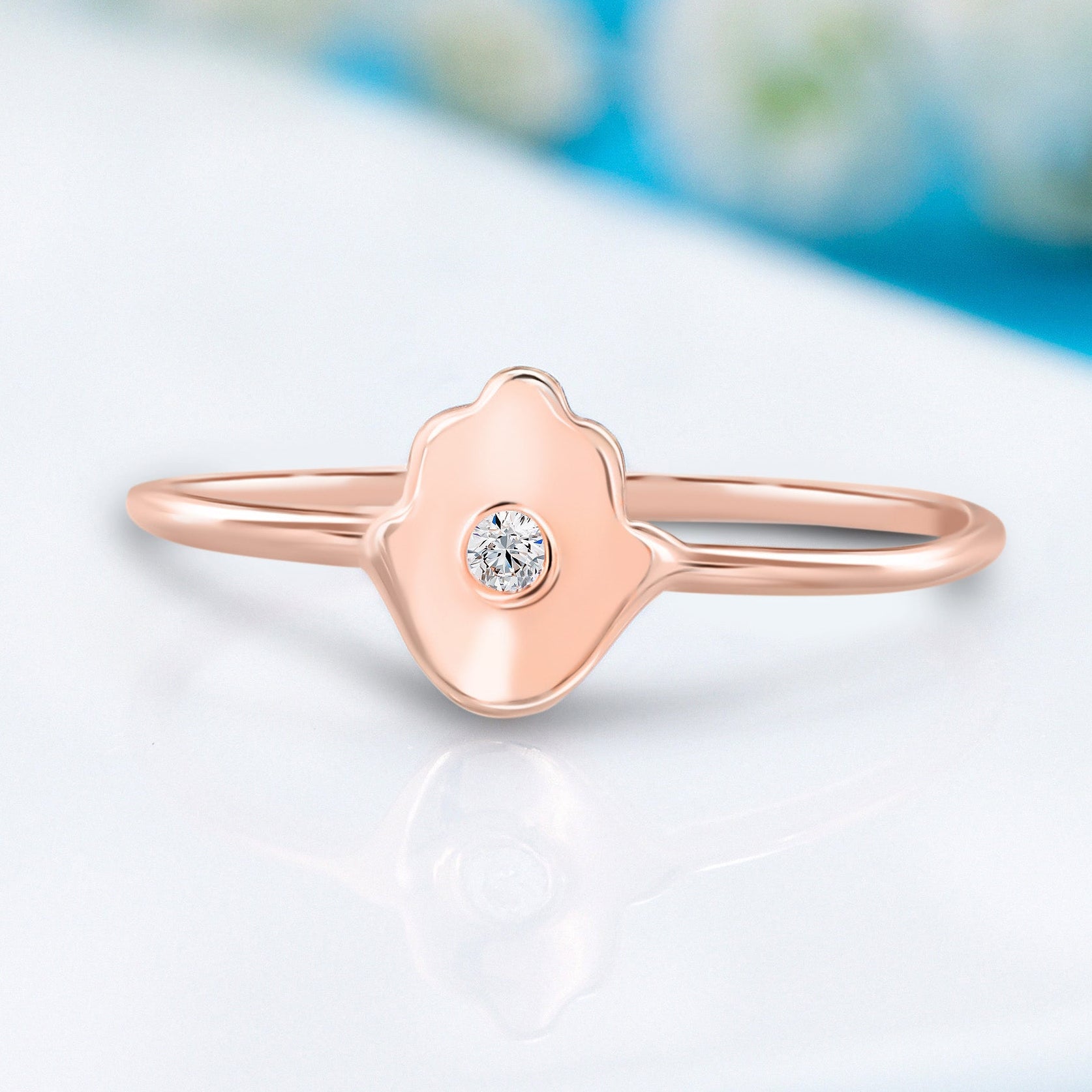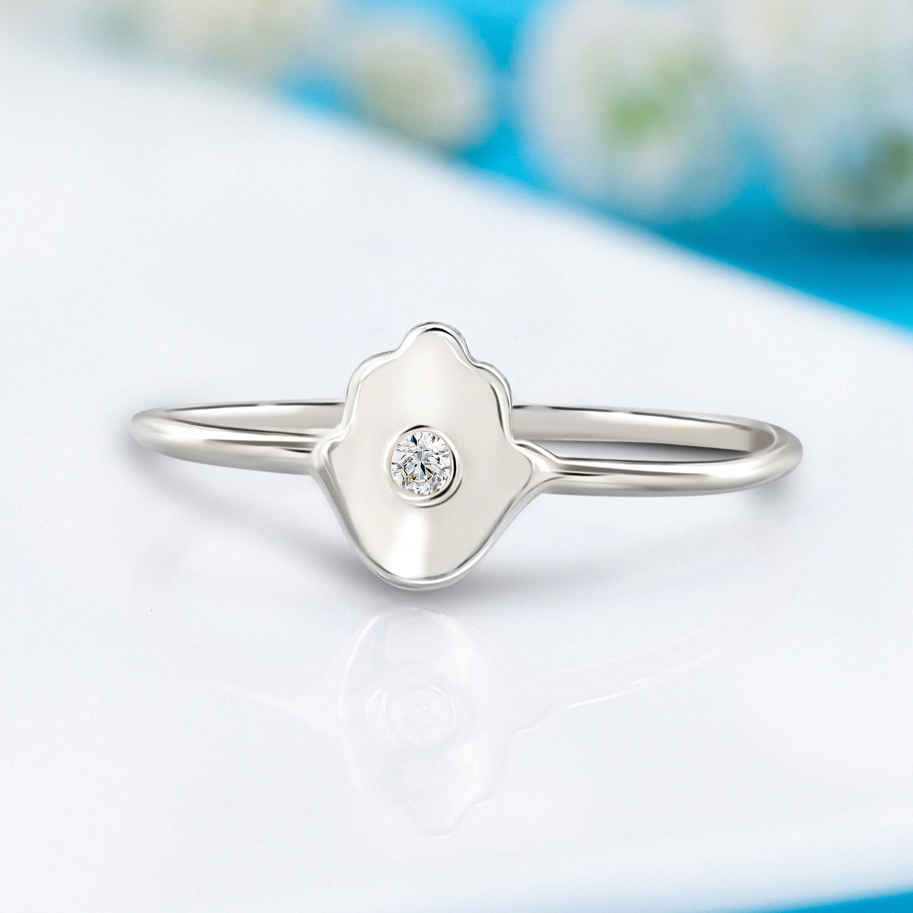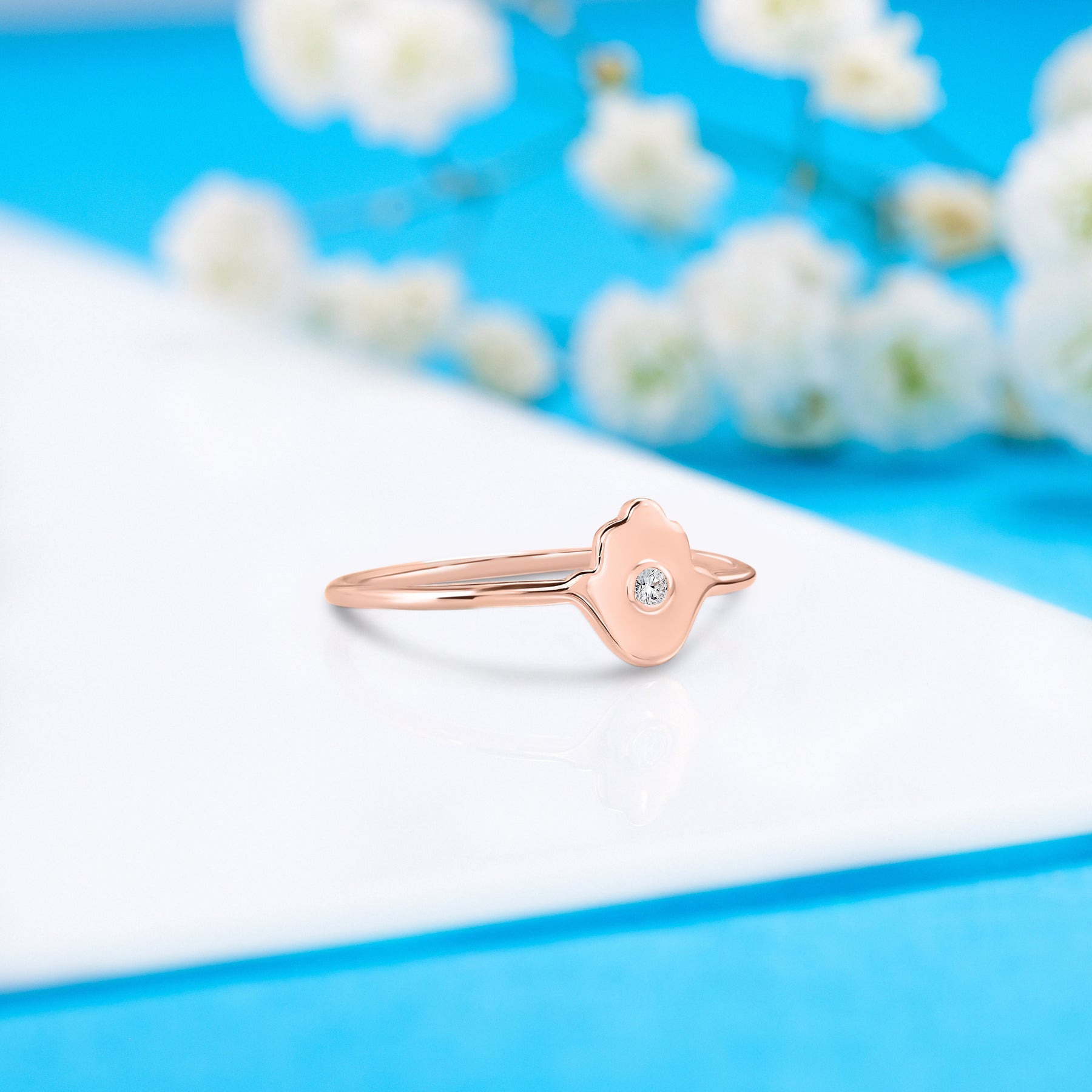 This 14k yellow gold Hamsa ring is a stunning symbol of protection and style. Featuring a 1.75mm natural diamond, weighing 0.021ct with H-I color and VVS1-VVS2 clarity, the ring adds a touch of sparkle to the meaningful Hamsa design. The sleek 1.2mm band in white gold enhances its minimalist elegance, making it a perfect piece for everyday wear or as a thoughtful gift. Embrace both beauty and significance with this exquisite Hamsa ring.