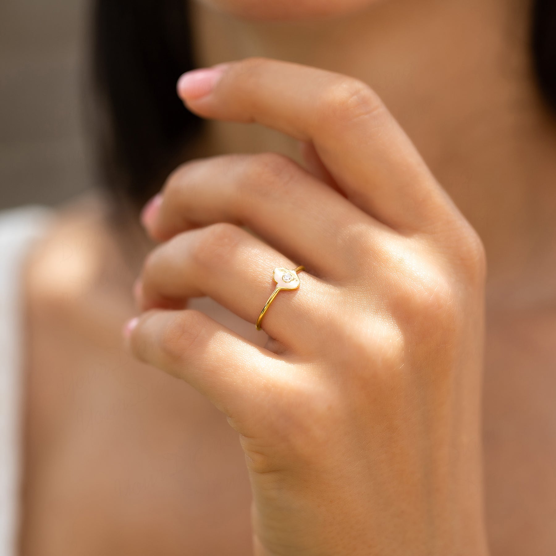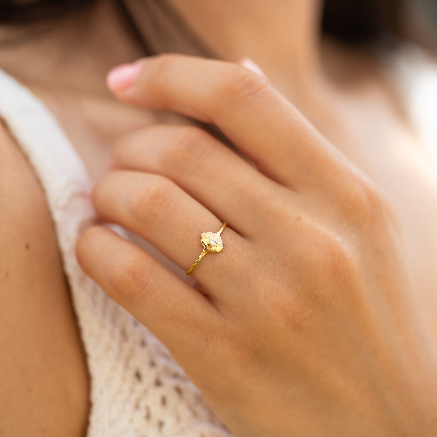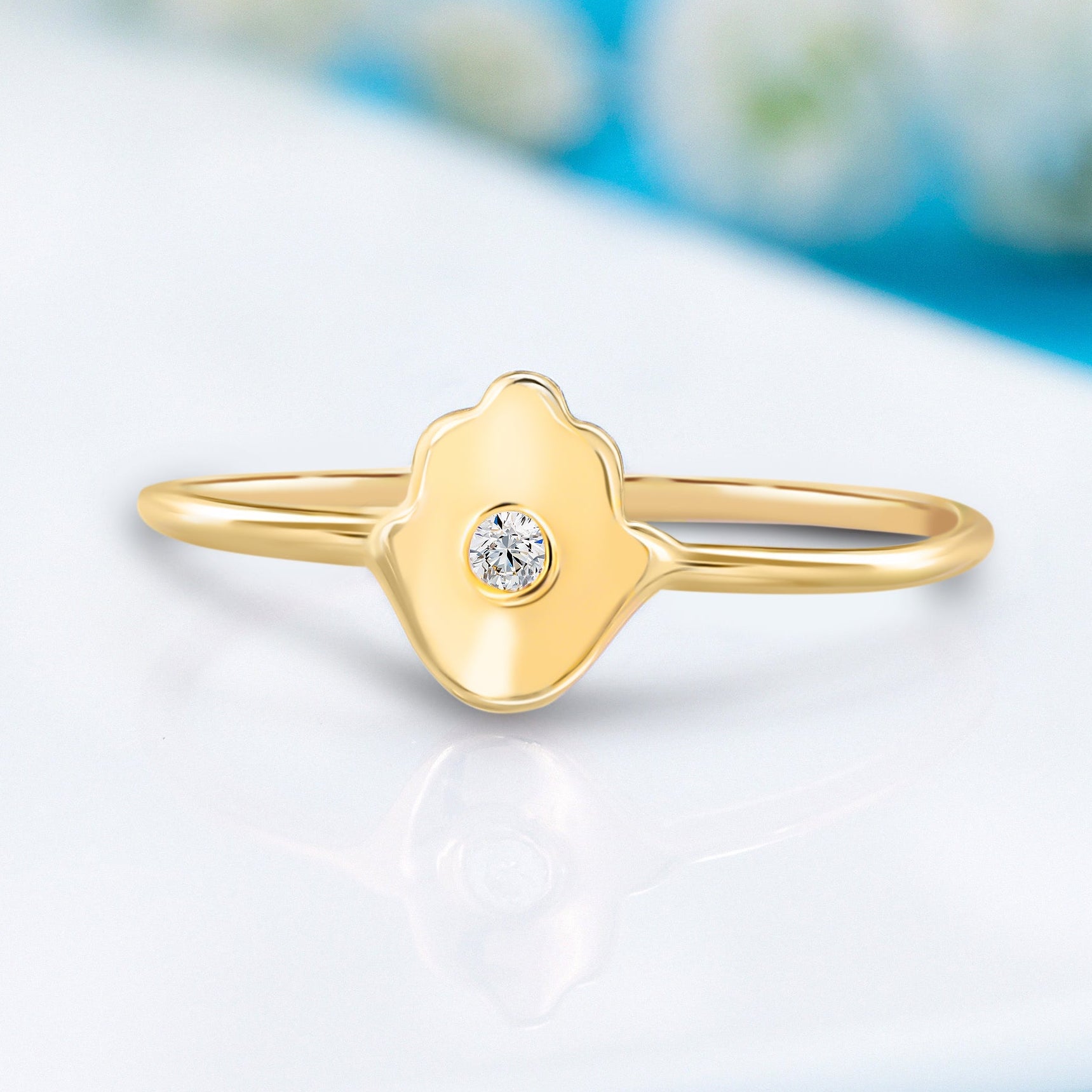 Women 14k yellow gold diamond hamsa protection ring